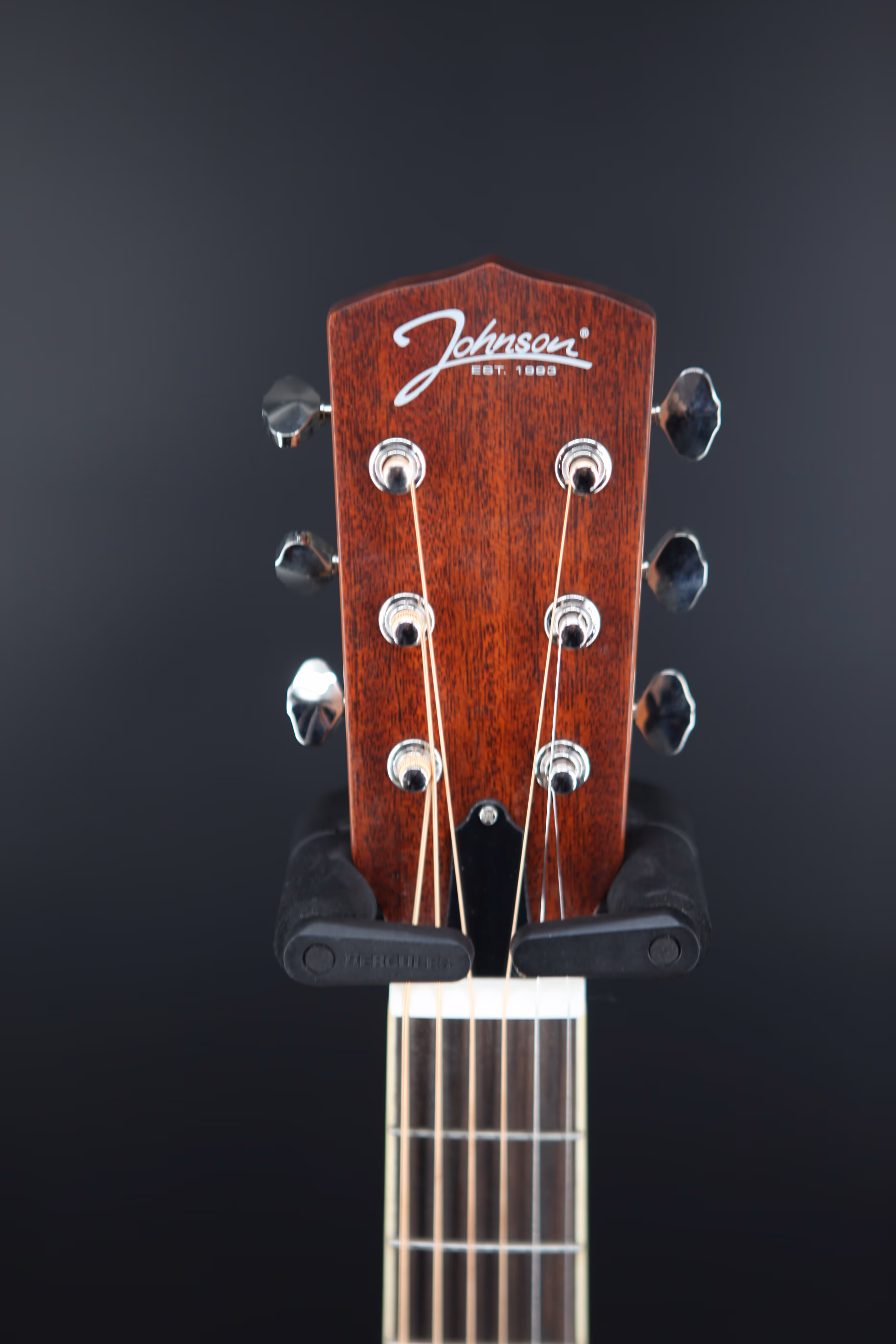 The Johnson JR-994E-AC resonator guitar presents a combination of classic design and contemporary features that will delight any lover of blues, country and folk music. This guitar convinces with pickup in single-cone design impresses with its full sound, a shortened scale length and an extra wide bone nut for comfortable playability. A wide variety of playing techniques can be comfortably implemented, which promises pure playing pleasure. The resonator guitar is a first-class choice for discerning musicians who are looking for an instrument that does not compromise on sound or aesthetics. Perfect for playing outdoors, on small stages or in an intimate studio atmosphere, this guitar offers unparalleled presence and performance.