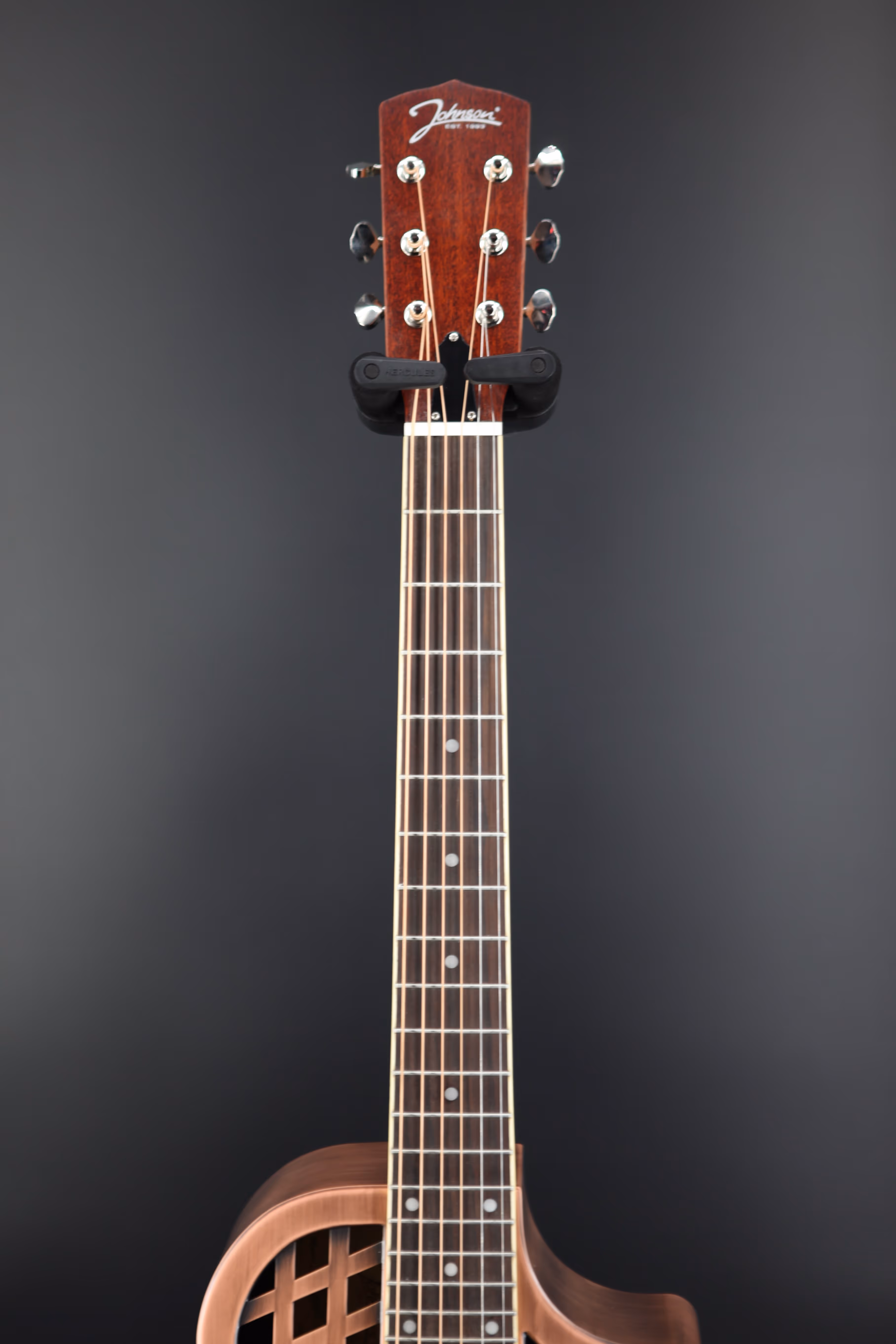 Singlecone guitarThanks to its singlecone construction, the Johnson JR-994E-AC produces a penetrating resonance, making it the ideal choice for slide guitarists and fingerstyle players looking for a distinctive and unmistakable sound. The resonator cone is masterfully crafted to add volume and depth to every note, making this guitar a fast favourite on stage and at Studio.Single-coil pickup with V + T controls