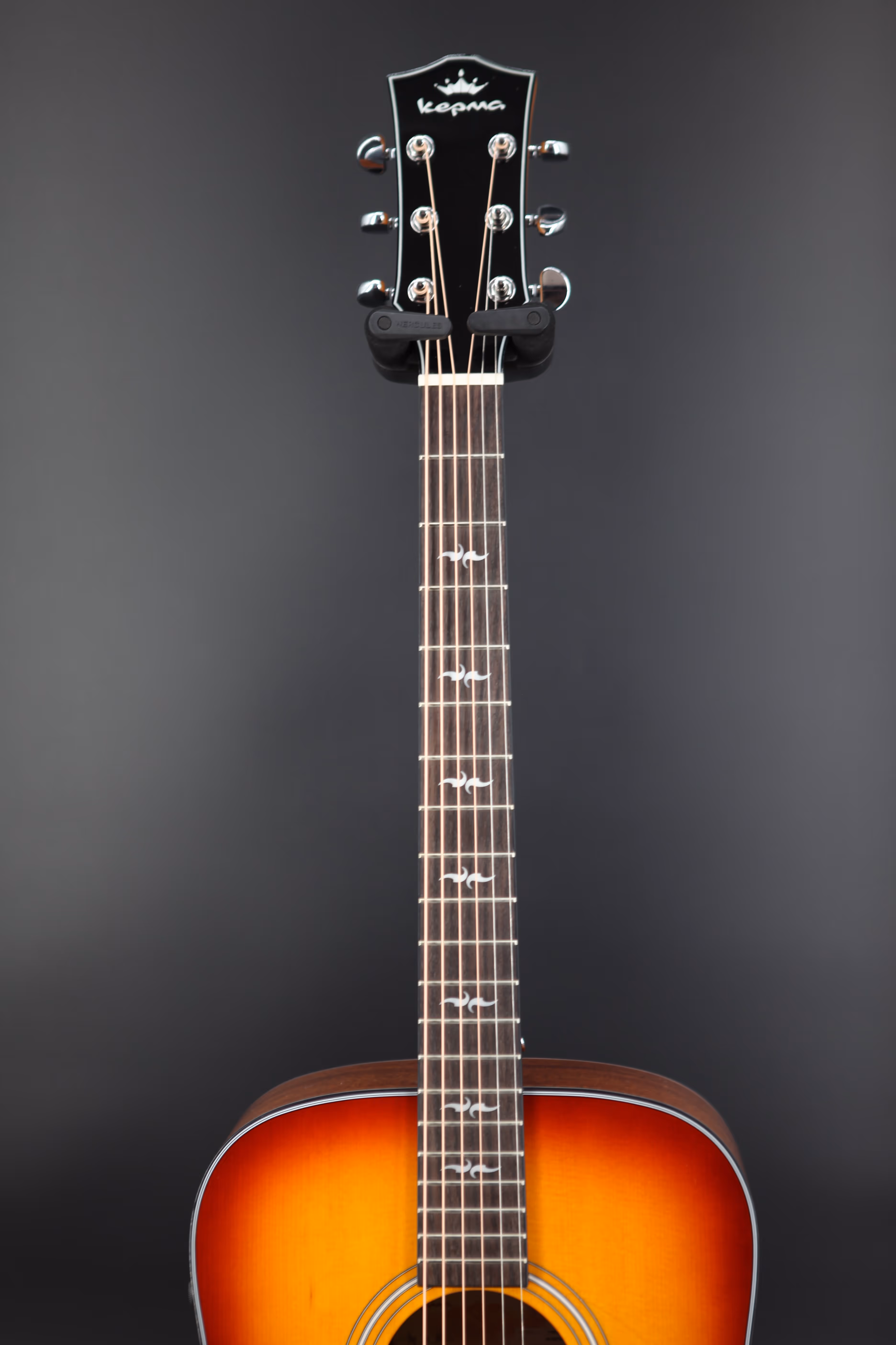 With solid A+ torrefied Sitka Spruce top and Mahogany back & sides, the F1 Dreadnought is a truly inspiring tool for every performer and songwriter. Each top is custom tapered and individually hand "tap tuned" (*) to provide the perfect frequency response and tonal balance. Featuring the precision of construction for which Kepma is renowned, the F1 is a "no compromise" and amazingly playable guitar that offers high-end features and acoustic tone you never dreamed possible in such an affordable instrument.