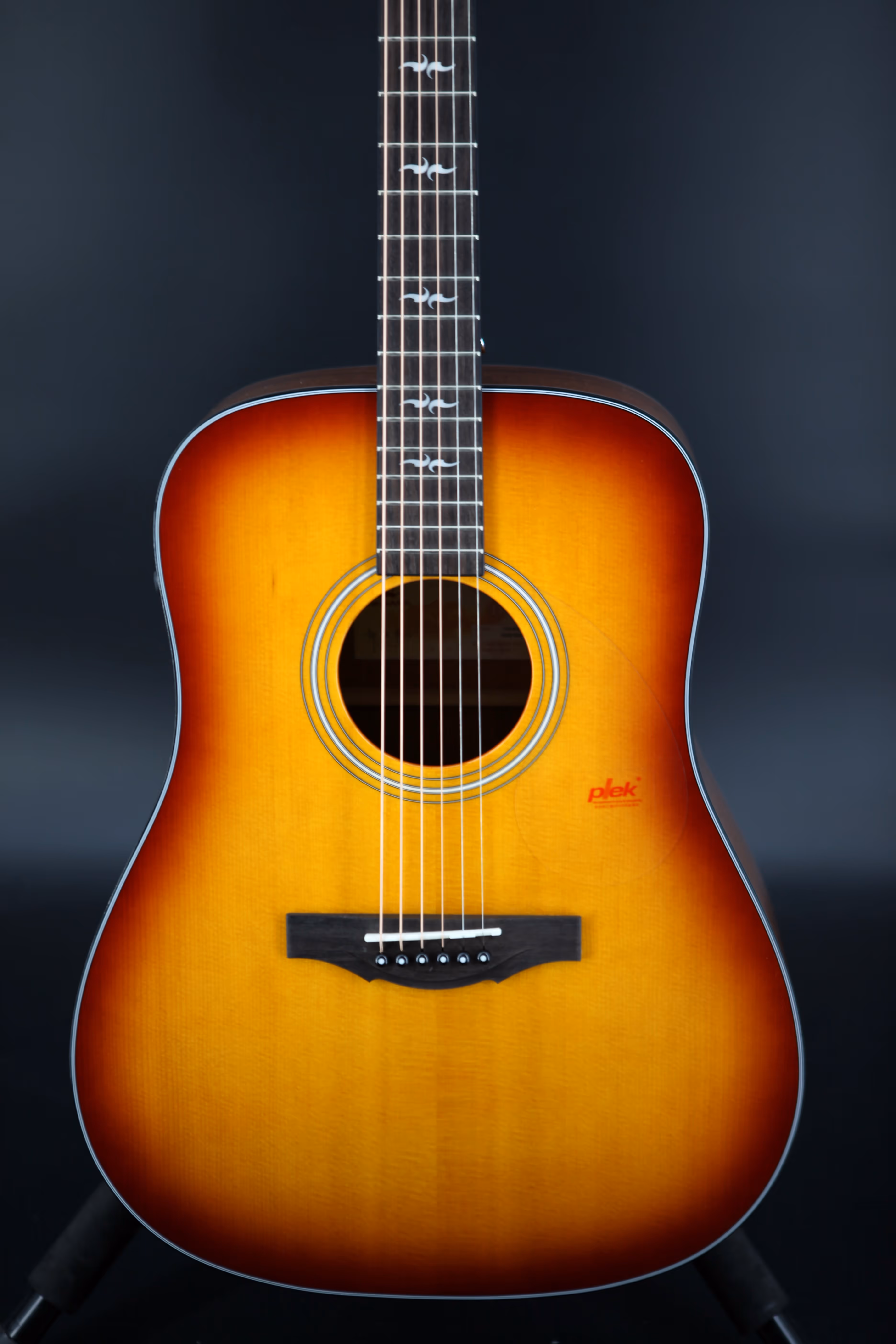 Another highlighting feature - besides the premium built and sound - is the use of the PLEK PRO state-of-the art technology. Latest innovation in guitar manufacturing, PLEK is an entire process that helps achieve the optimum playability of every instrument: with the help of a computerized machine which scans the whole fretboard (all the work performed on an instrument is done under simulated string tension to reproduce exact playing conditions), it files and cuts the frets accordingly, resulting in precise intonation and buzz free playing right out of the box!