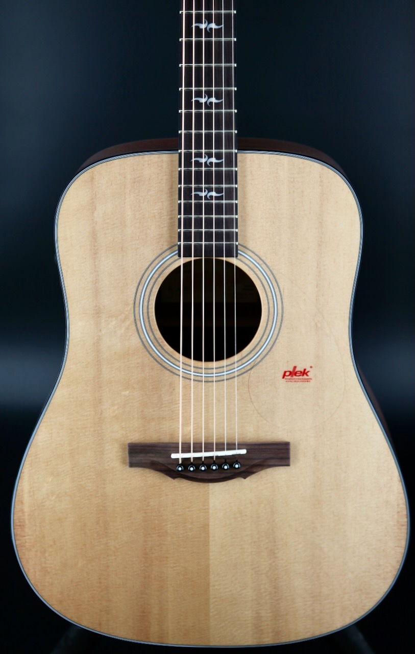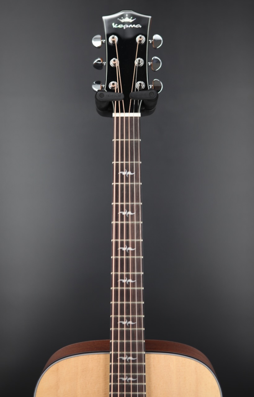 With solid A+ torrefied Sitka Spruce top and Mahogany back & sides, the F1 Dreadnought is a truly inspiring tool for every performer and songwriter. Each top is custom tapered and individually hand "tap tuned" (*) to provide the perfect frequency response and tonal balance. Featuring the precision of construction for which Kepma is renowned, the F1 is a "no compromise" and amazingly playable guitar that offers high-end features and acoustic tone you never dreamed possible in such an affordable instrument.