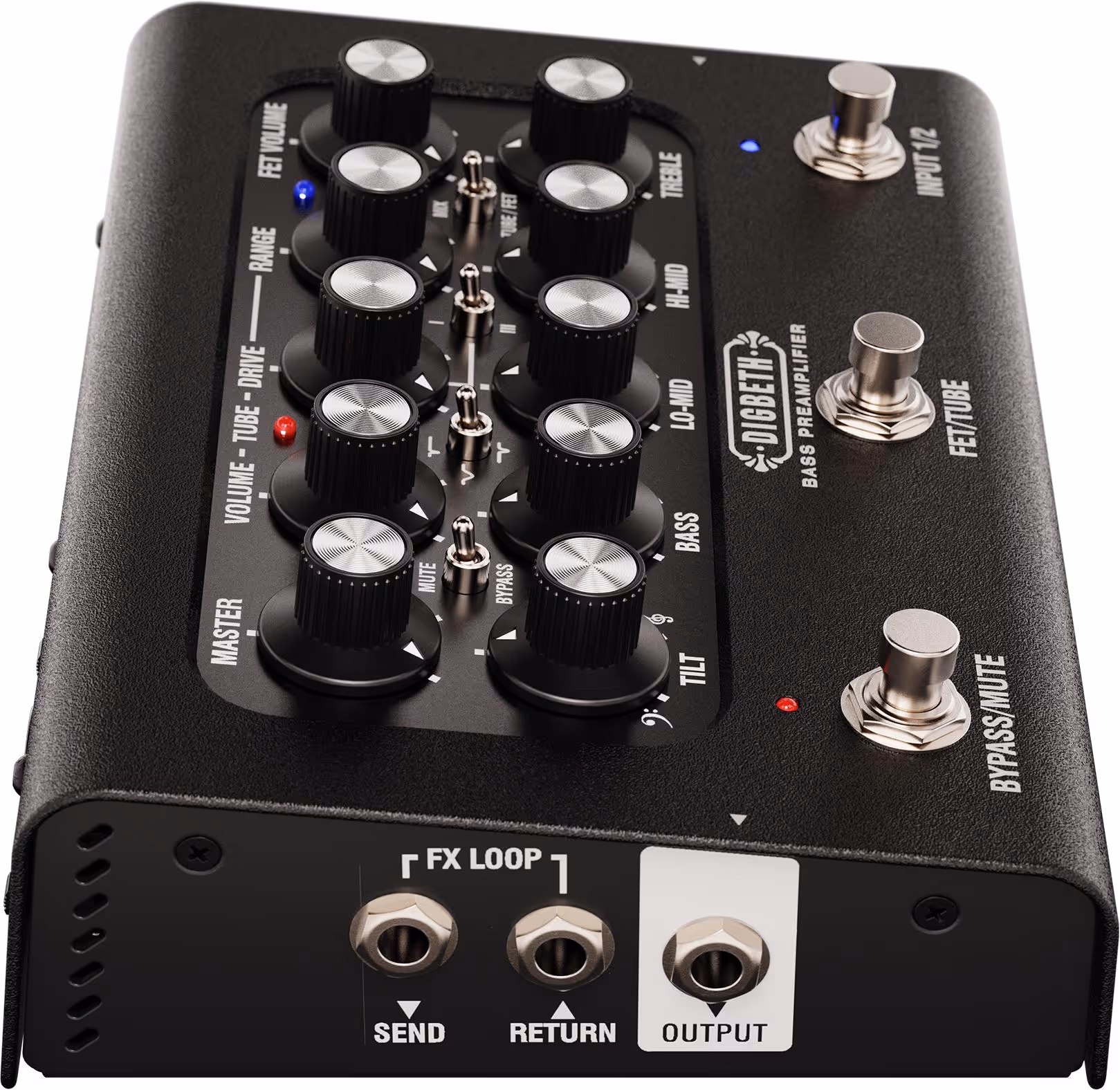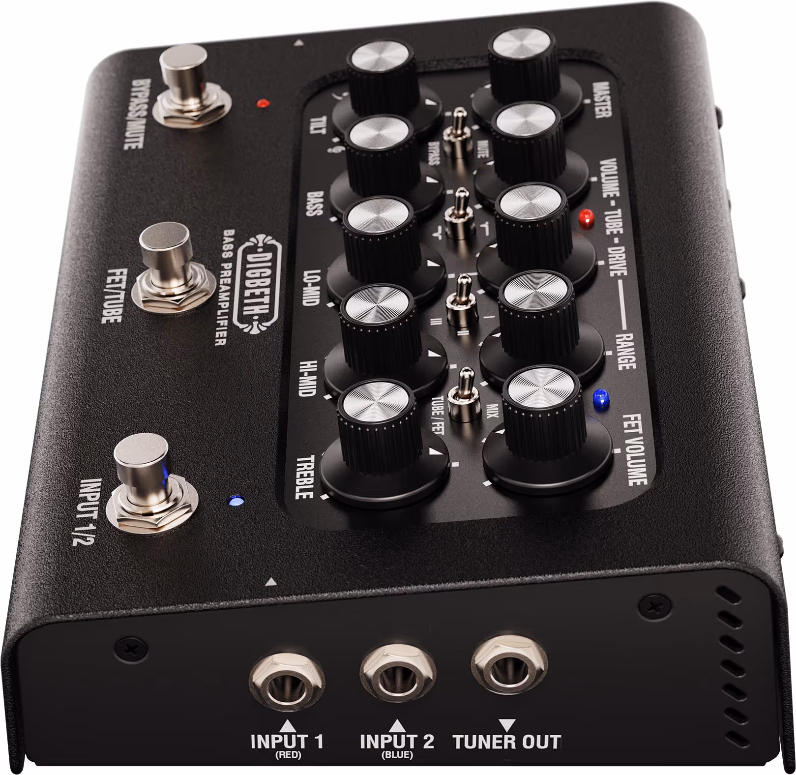 The master volume gives you total control over the preamp characteristics while maintaining precise command over your overall level. The TUBE channel can be shaped with EQ tweaks for players who want to dial in specific drive character. The RANGE control adds bottom end to your drive. Selectable mid pre-shapes let you sculpt exactly the tonal character you're after.