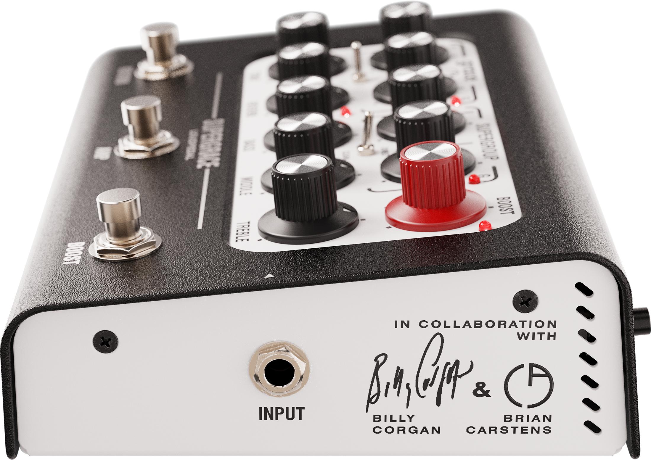 The SUPERGRACE unites two completely different tonal universes without asking you to sacrifice anything. Footswitch between the crystalline articulation and massive modern gain of the GRACE channel, the one born from Billy Corgan's refusal to compromise on extreme gain and note definition at saturation levels, and the unfiltered British aggression of the SUPERGROUP, a circuit so powerful it shaped early heavy metal, influencing Billy and every generation since it’s first release in the late 60s.