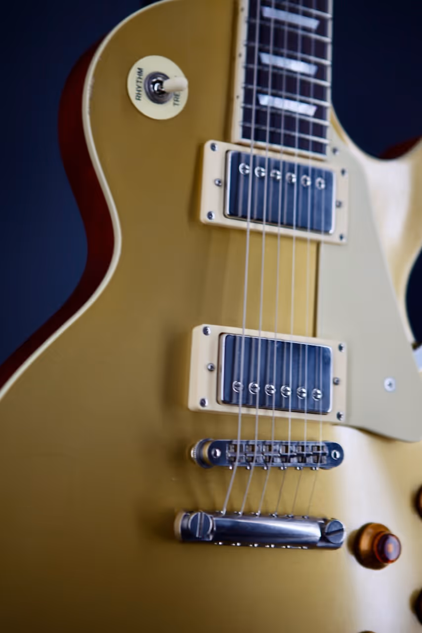 The solid mahogany body and one-piece mahogany neck create the rich, resonant foundation that made the originals legendary. Topped with a carved maple cap and finished in a beautifully aged Gold Rush nitrocellulose lacquer, the guitar radiates understated elegance. Maybach’s meticulous aging process brings decades of character to life — with soft checking lines, worn edges, and just the right amount of patina on the hardware for that genuine vintage vibe.