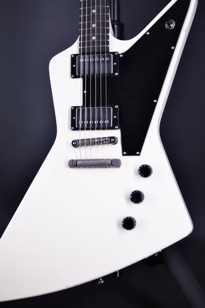 The X-Wing Ebony is a bold, single-cut solidbody electric built around a dark, focused tonal character and classic set-neck construction. Its solid body and mahogany neck deliver strong midrange punch and controlled low end, while the ebony-finished look reinforces its purposeful, stripped-back aesthetic.