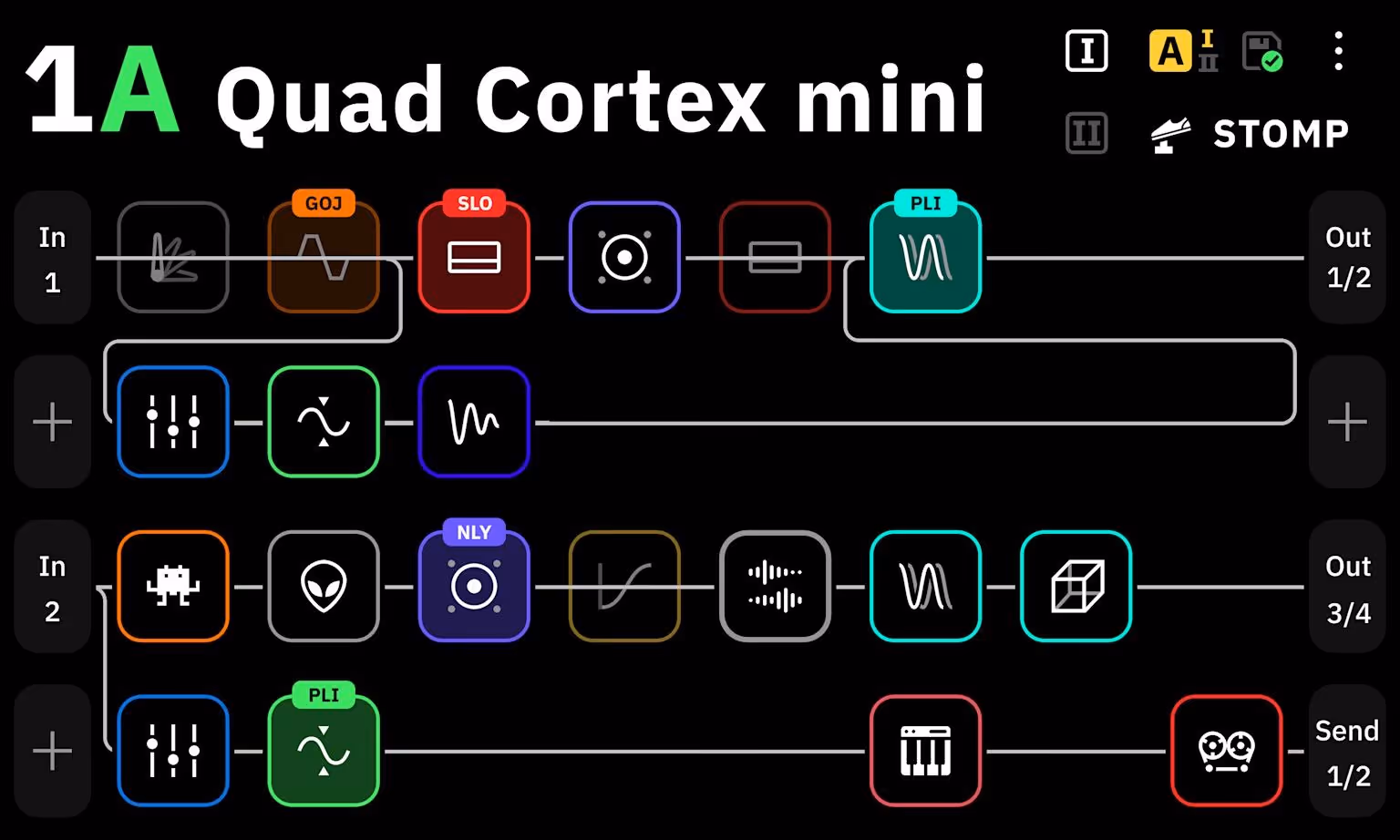 - Preset, Scene, Stomp and Hybrid modes for flexible live and studio workflows.