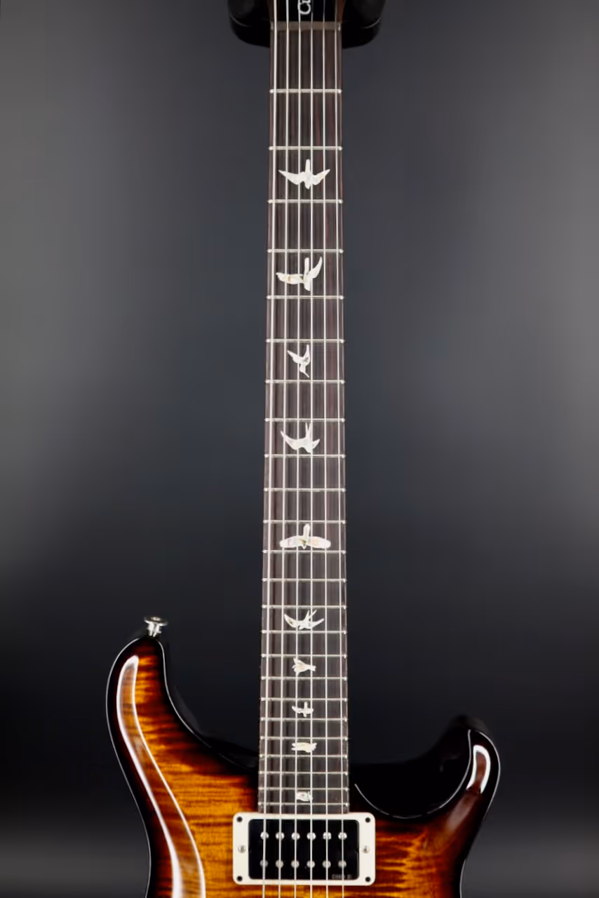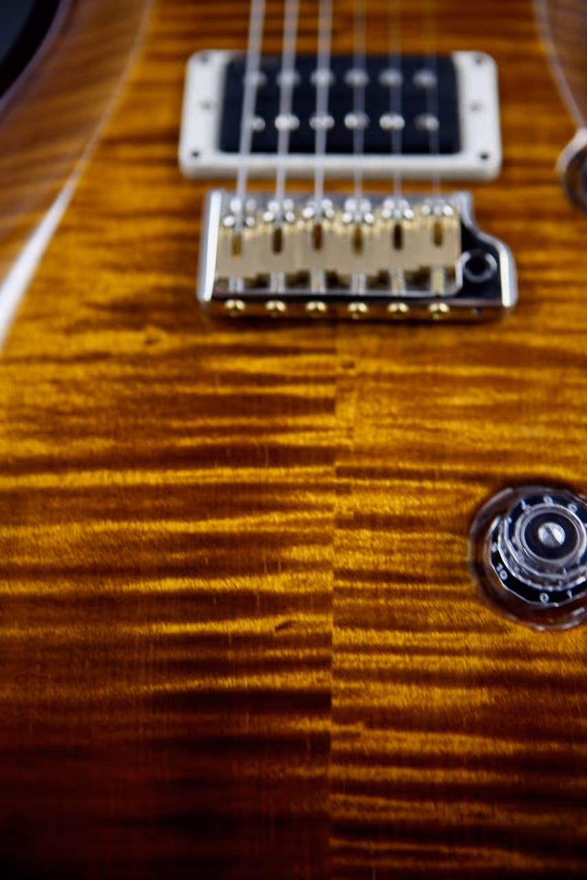 Equipped with the traditional volume/tone/5-way blade switch, this model also features a 3-way selector to switch between or blend the magnetic pickups and piezo electronics. The two output jacks allow guitarists to plug into their favorite electric or acoustic guitar amp or DI into a soundboard. By utilizing the separate blend control, the tone of the PRS DMO pickups can also be combined with the piezo acoustic sounds through a single output. With a nearly infinite range of tones, the Custom 24 Piezo is a perfect “go-to” guitar for players of all kinds.