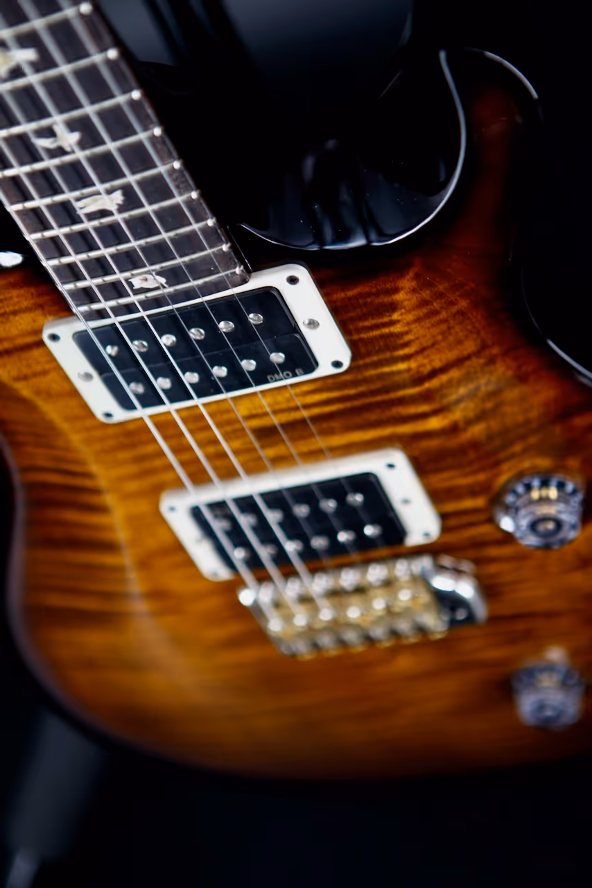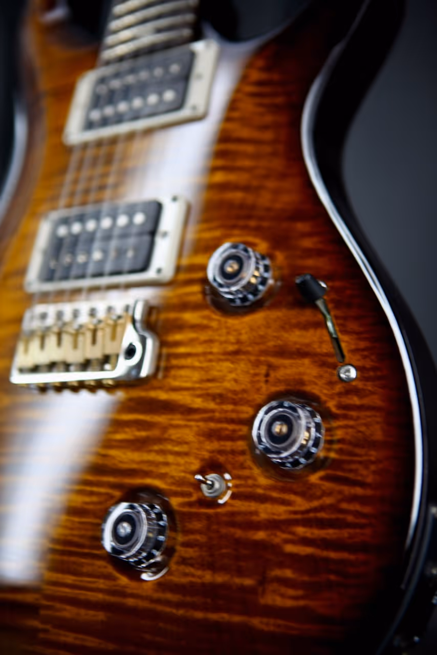 The Custom 24 Piezo boasts PRS DMO treble and bass pickups. PRS’s DMO (Dynamic, Musical, Open) pickups were personally designed by Paul Reed Smith and the PRS New Products Engineering team. From our own hands-on research into coveted vintage pickup models to advancements in signal analyzation and “tuning” technology, these pickups incorporate every detail of pickup knowledge PRS has gained in recent years of R&D. PRS DMO pickups have a “wide open” sound with vocal character, meaning they deliver clear, pleasant-sounding tones across a wide range of frequencies (bass to treble) in each pickup.