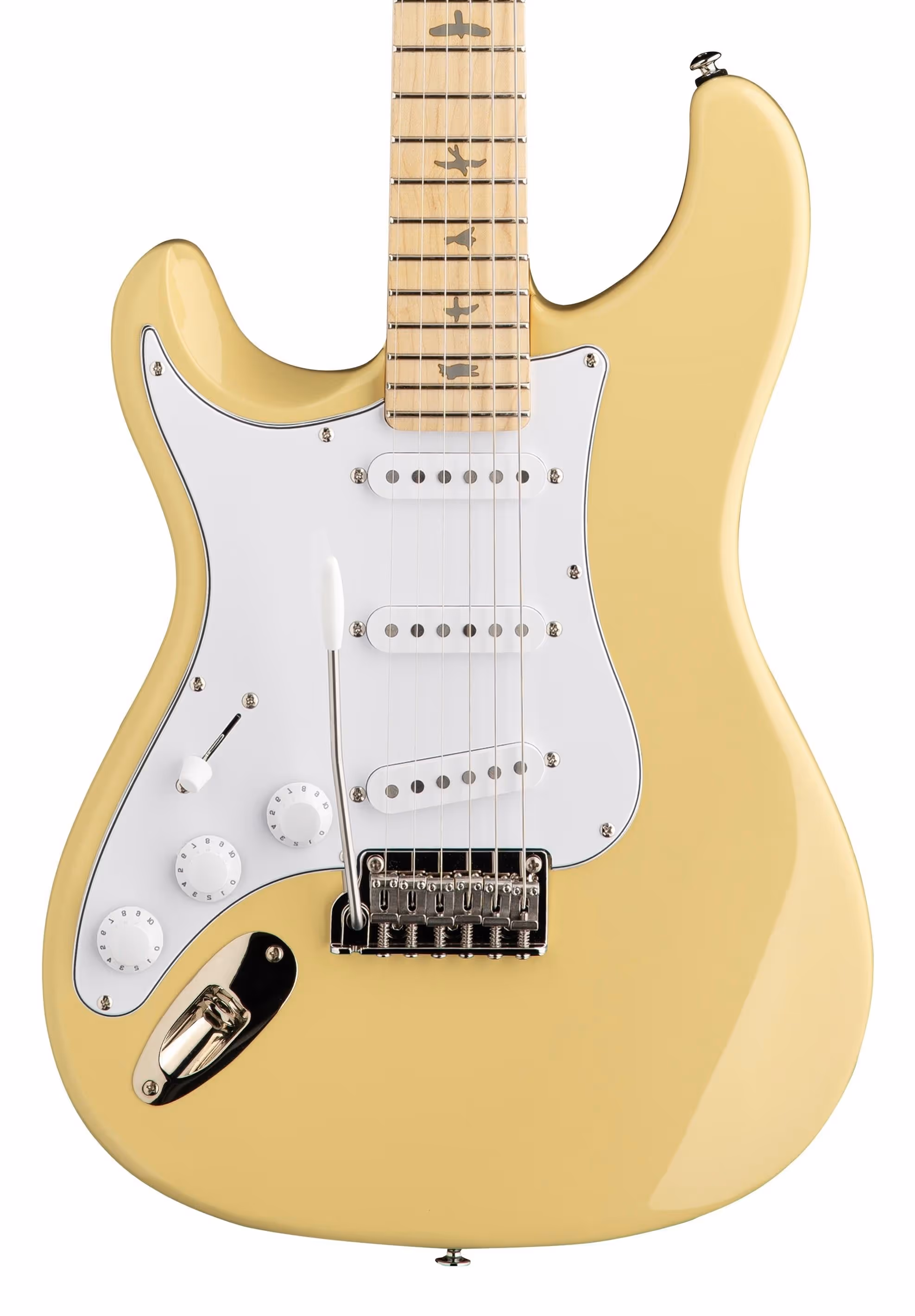 Plug it in, and the three single-coil 635JM “S” pickups will bark and sing. This guitar is anchored by a two-point steel tremolo, synthetic bone nut, and vintage-style tuners. Other design features include the PRS Silver Sky inverted headstock shape and the PRS double-acting truss rod (accessible from the front of the headstock for ease of use).