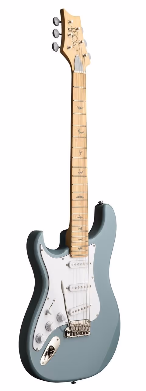 The PRS SE Silver Sky starts with a poplar body, bolt-on maple neck, and rosewood fretboard with PRS trademark bird inlays. The 22-fret, 25.5” scale length neck features the original 635JM carve and an 8.5” fretboard radius, so the PRS SE Silver Sky will feel right at home.