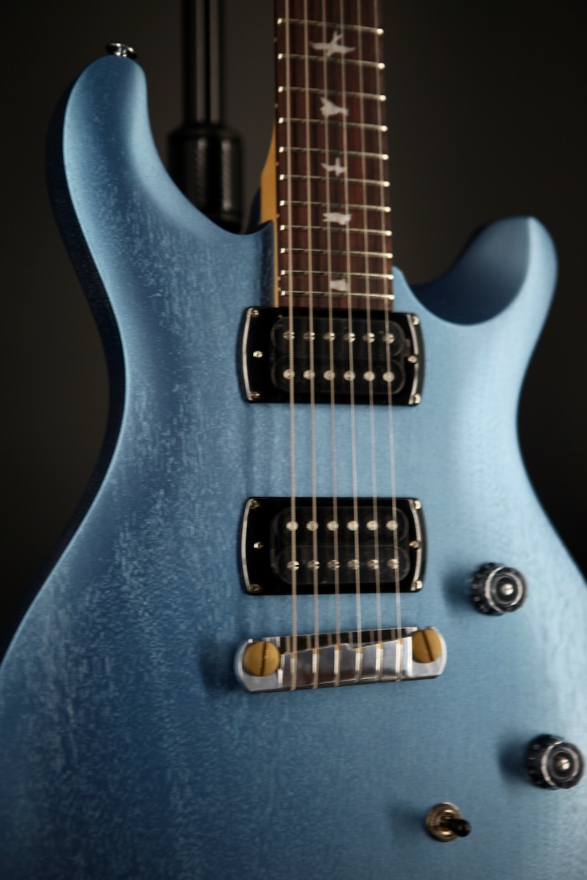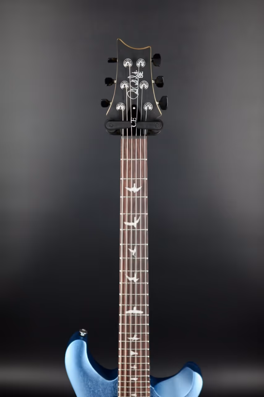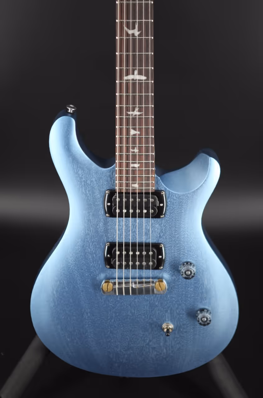 The PRS SE CE24 Standard Stoptail in Satin Ice Blue Metallic combines the dynamic snap of a bolt-on neck with the warmth and focus of an all-mahogany body, delivering a versatile and reliable instrument perfect for players at any stage. Its thin satin finish enhances resonance and sustain, while the maple neck with a semi-gloss finish offers a smooth, comfortable playing experience. Equipped with 85/15 “S” pickups and a push/pull tone control for coil splitting, this guitar effortlessly covers a wide tonal palette, from classic humbucker growl to crisp single-coil sparkle.