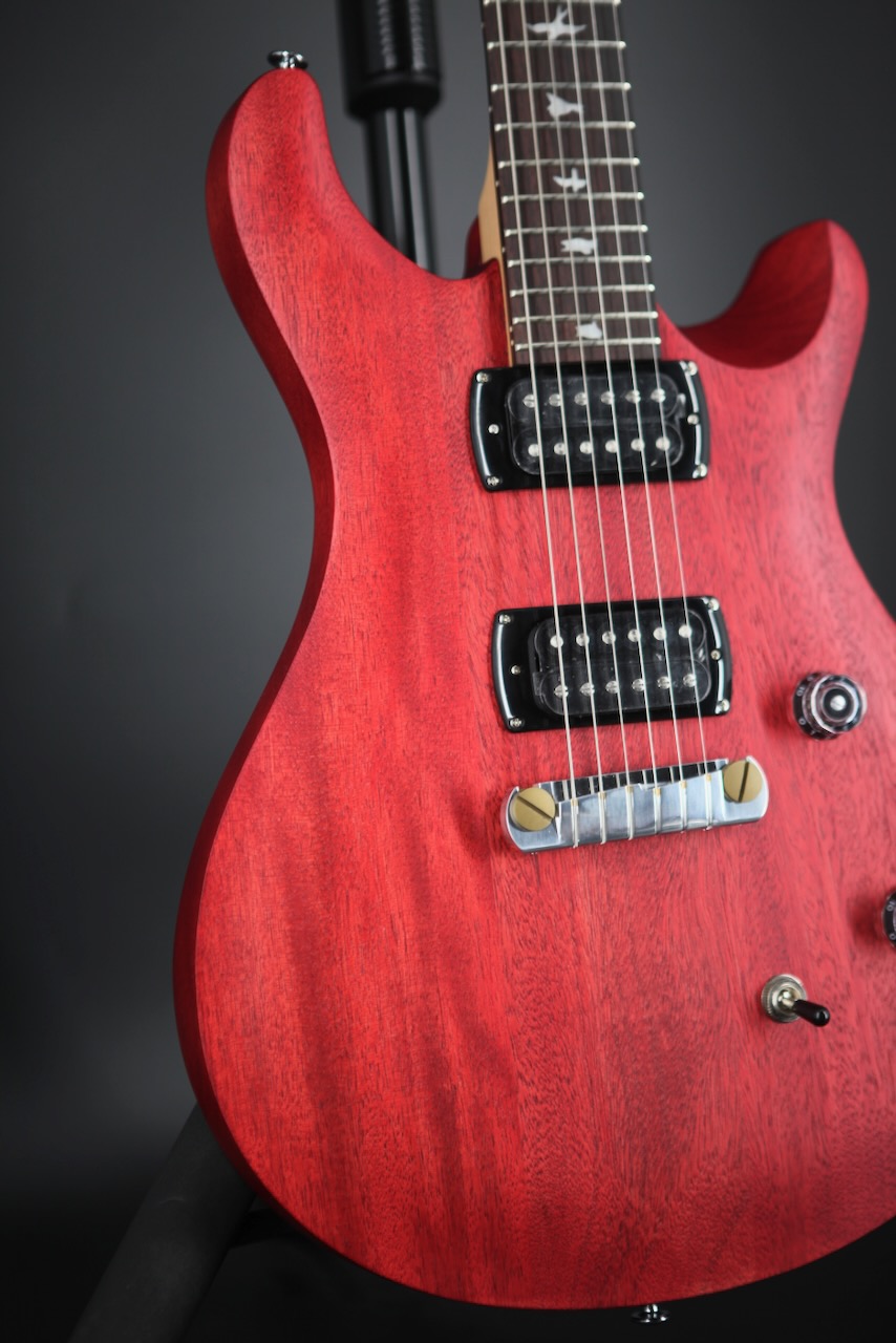 The PRS SE CE24 Standard Stoptail in Satin Vintage Cherry combines the dynamic snap of a bolt-on neck with the warmth and focus of an all-mahogany body, delivering a versatile and reliable instrument perfect for players at any stage. Its thin satin finish enhances resonance and sustain, while the maple neck with a semi-gloss finish offers a smooth, comfortable playing experience. Equipped with 85/15 “S” pickups and a push/pull tone control for coil splitting, this guitar effortlessly covers a wide tonal palette, from classic humbucker growl to crisp single-coil sparkle.