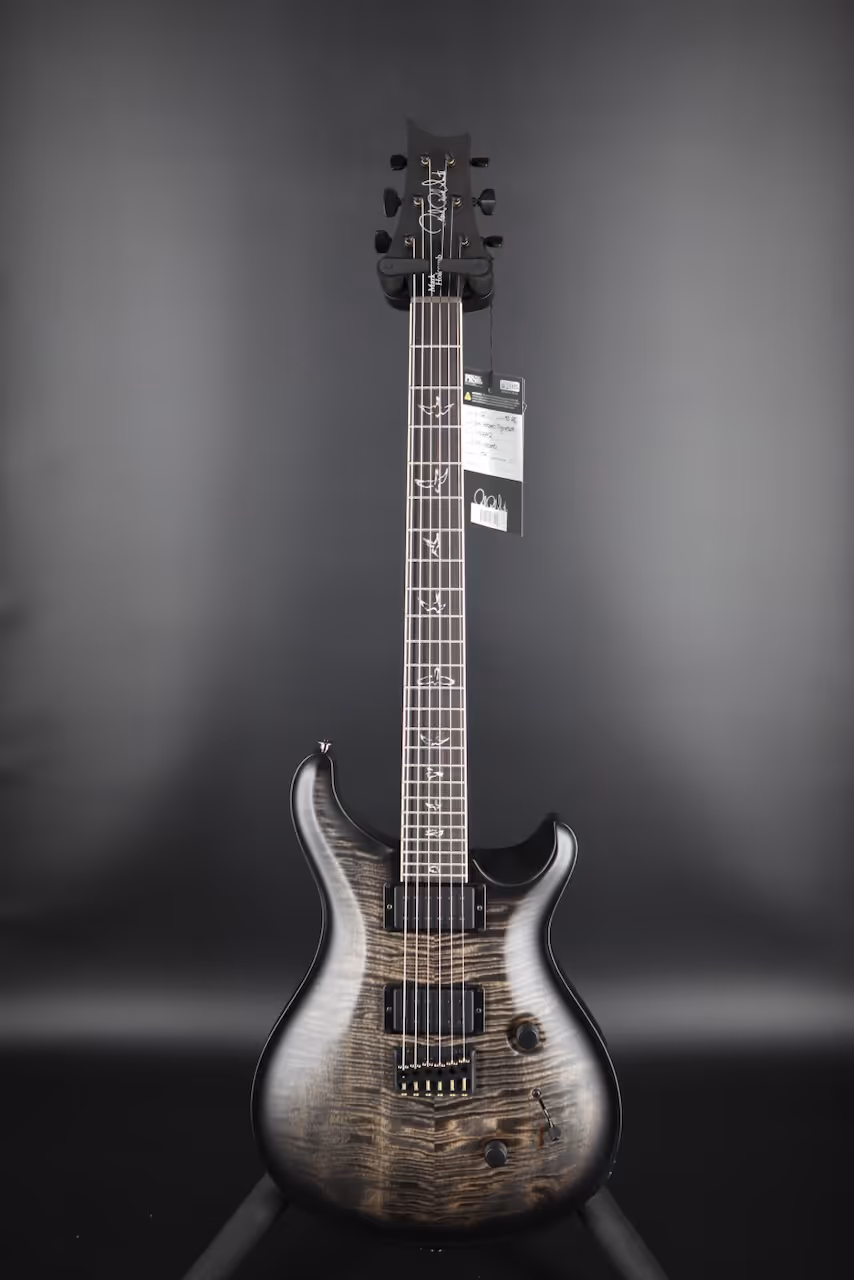 The Custom 24 is the definitive PRS guitar. Unveiled at the 1985 NAMM Show, this stellar six-string was PRS’ very first production model and it remains their most popular instrument even today. Distinctive for its flying bird fingerboard inlays, dual humbuckers, 24 frets, 25" scale and ergonomic contours — the Custom 24 is considered a modern classic among guitarists. This affordable SE version of the iconic Custom 24 possesses all of those signature features, with the addition of a Floyd Rose 1000 double-locking tremolo system that ensures rock-solid tuning stability. Finished in a gorgeous Charcoal Burst colour, this instrument's versatile sonics and remarkable playability makes it suitable for all styles — but metal in particular!