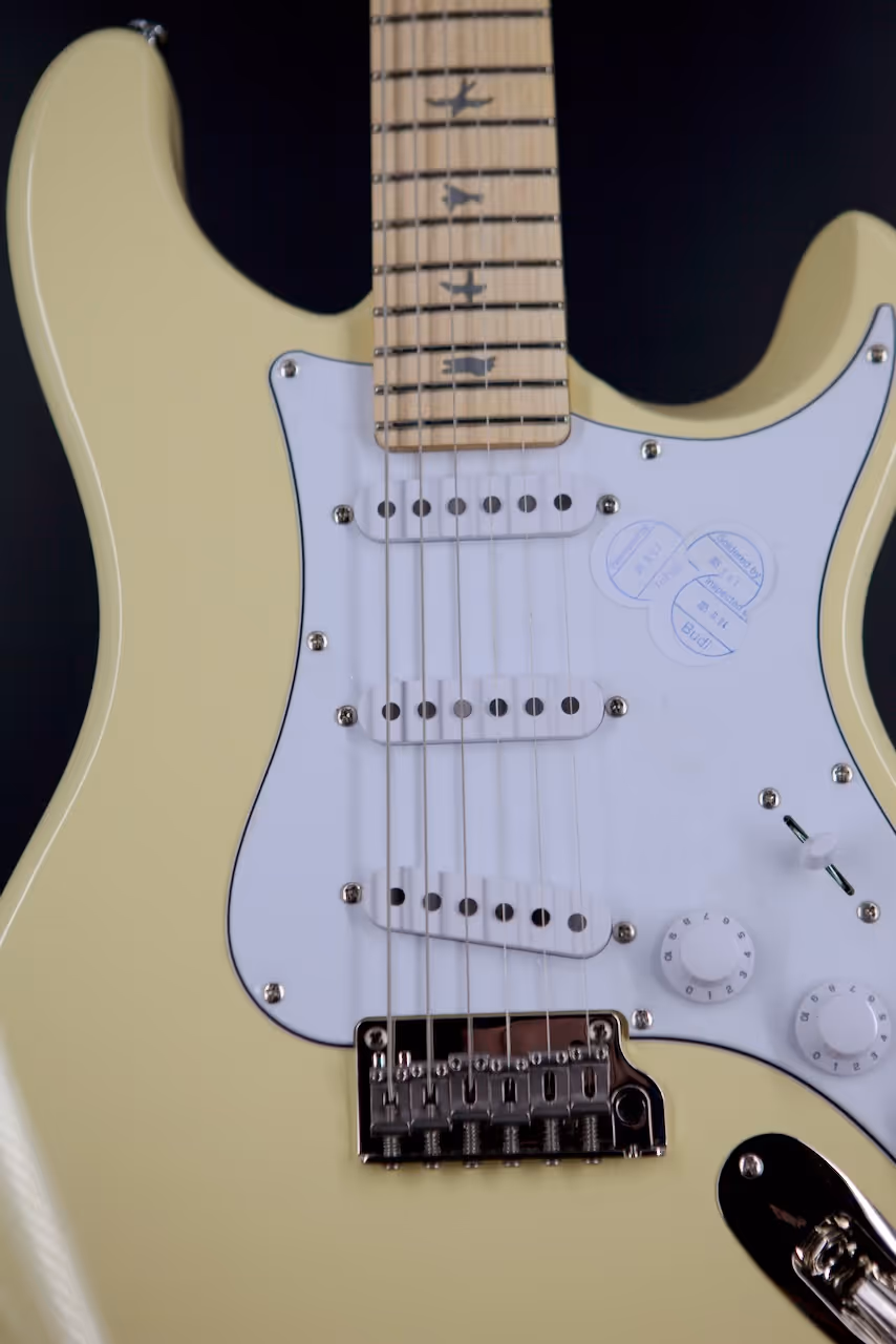 Plug it in, and the three single-coil 635JM “S” pickups will bark and sing. This guitar is anchored by a two-point steel tremolo, synthetic bone nut, and vintage-style tuners. Other design features include the PRS Silver Sky inverted headstock shape and the PRS double-acting truss rod (accessible from the front of the headstock for ease of use).