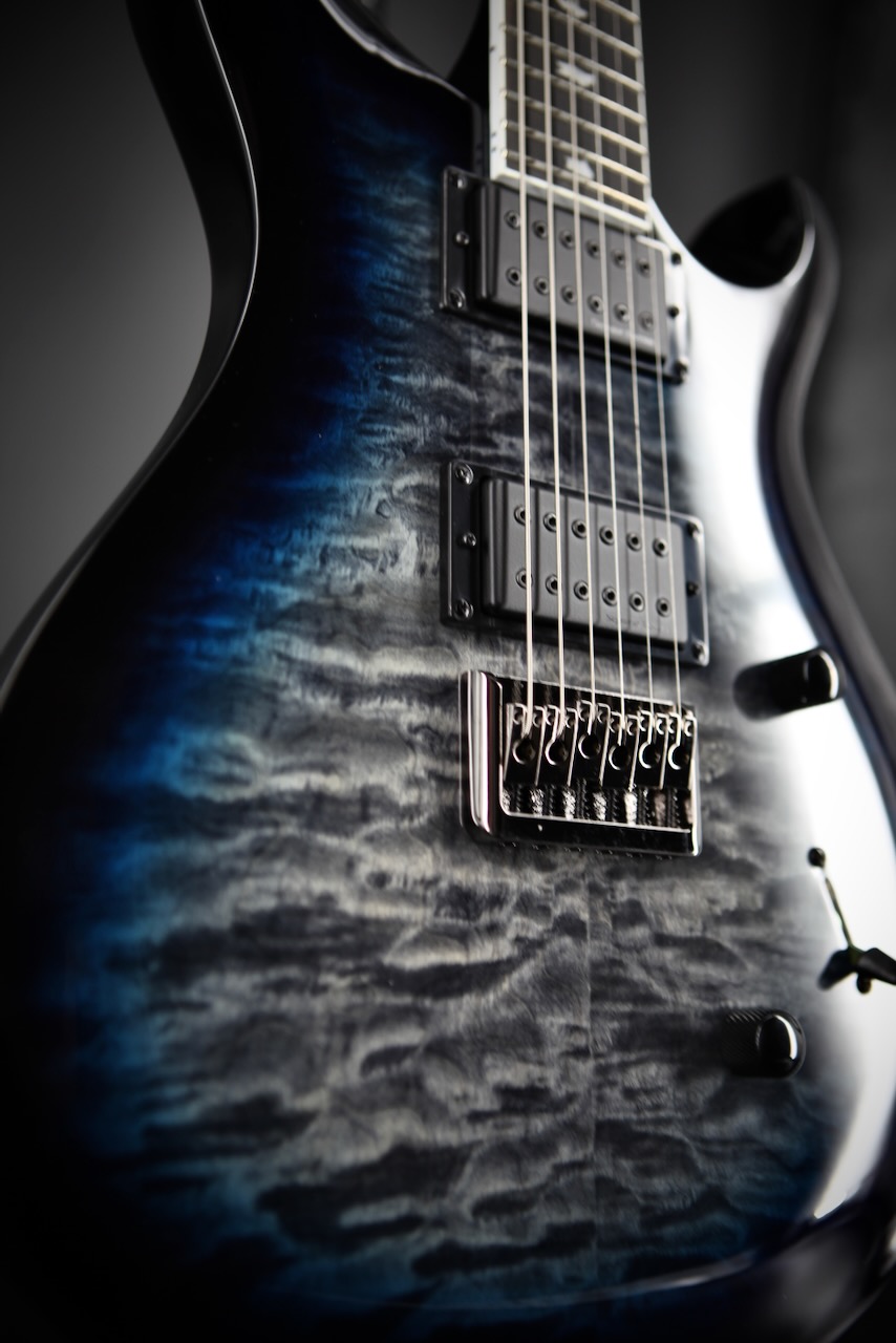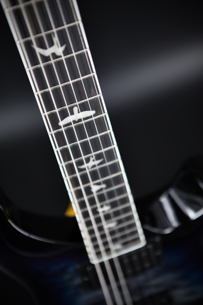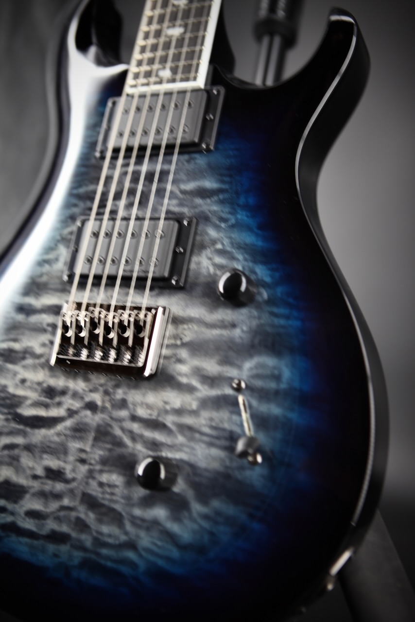 The SE Mark Holcomb model stands on its own in the PRS lineup and delivers addic- tive playability thanks to some unique specifications, including a 24-fret, 25.5” scale length wide thin satin maple neck with 20” radius ebony fretboard. Designed to work with modeling amps in mind, Holcomb’s Scarlet & Scourge pickups bring full tone with slightly less drive, offering more articulation than ever. Whether playing sophisticated chords or melodic leads, in a band or solo, you’ll hear every note. Other specifications include a quilted maple veneer, black chrome hardware, and a 3-way blade pickup switch with push/pull tone knob for coil splitting.