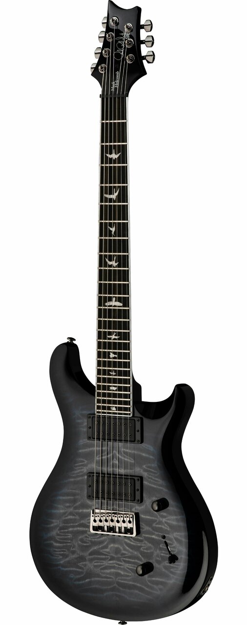 The SE Mark Holcomb SVN delivers addictive playability thanks to some unique specifications, including a 24-fret, 26.5” scale length, wide thin satin maple neck with 20” radius ebony fretboard — not to mention seven strings. Holcomb’s signature Seymour Duncan Scarlet & Scourge 7-string pickups provide the right amount of output and articulation whether you’re playing sophisticated chords or solos and whether you’re playing alone or working in the mix of a band. Other specifications include a quilted maple veneer, black hardware, and a 3-way blade pickup switch with push/pull tone knob for coil splitting. The model is topped off with string-through, plate-style, 7-string bridge.