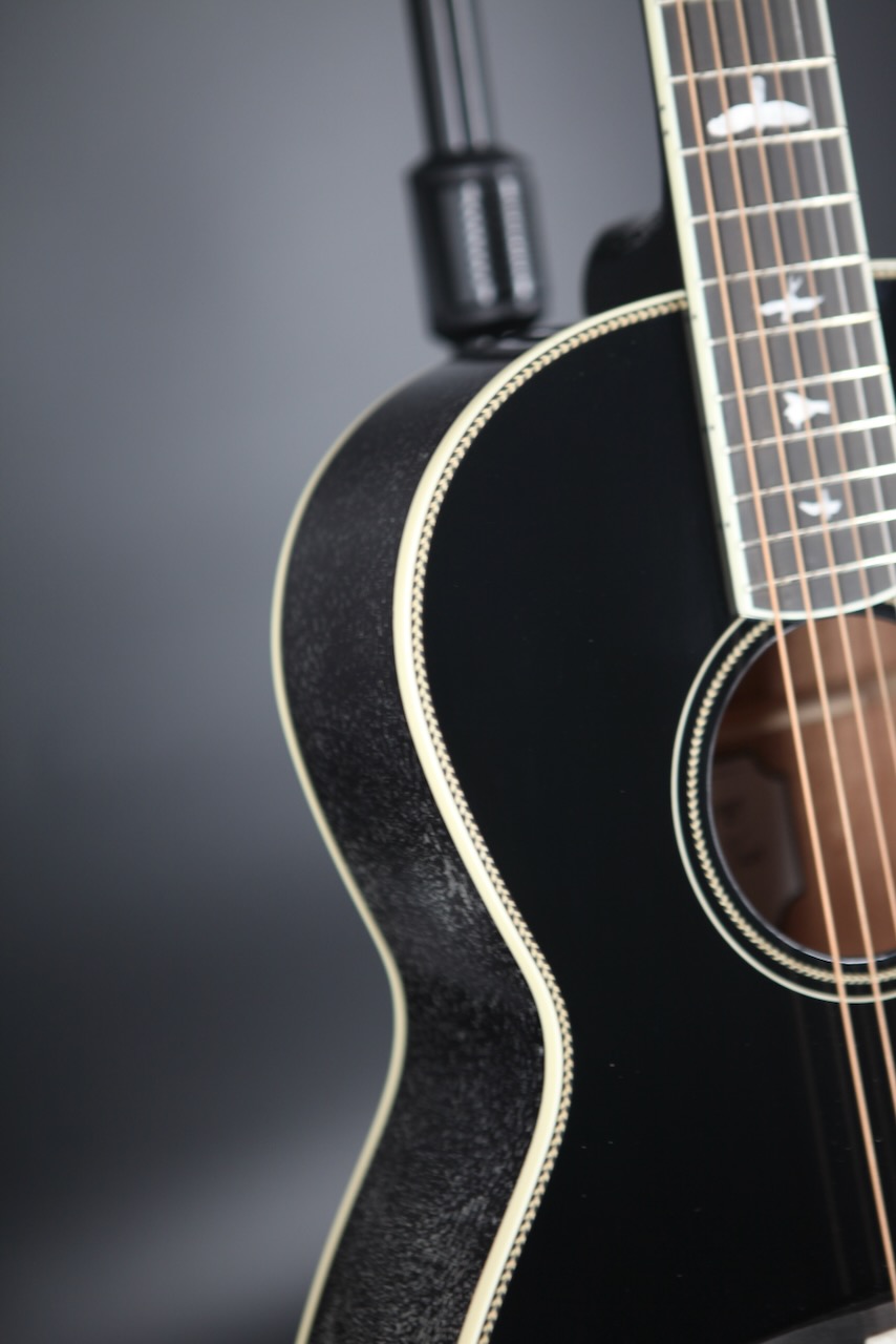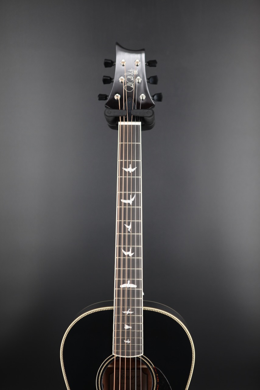 As you might expect from PRS, you still get the iconic bird inlays even in their acoustic selection. The short 24.72 inch scale length neck allows for quick jumps across the luxurious ebony fingerboard. It's matched with a beautifully contoured ebony bridge granting comfortable picking hand placement.