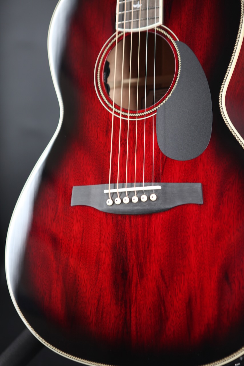 The P20E is made of an all-Mahogany, non-cutaway body and neck to make up for the lack of size. This warm-sounding tonewood introduces a satisfying undertone to what is otherwise a naturally treble-laden voicing.