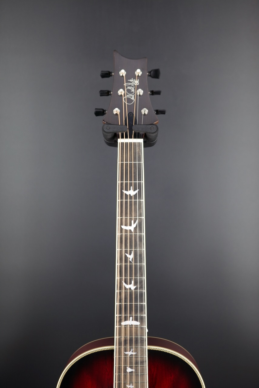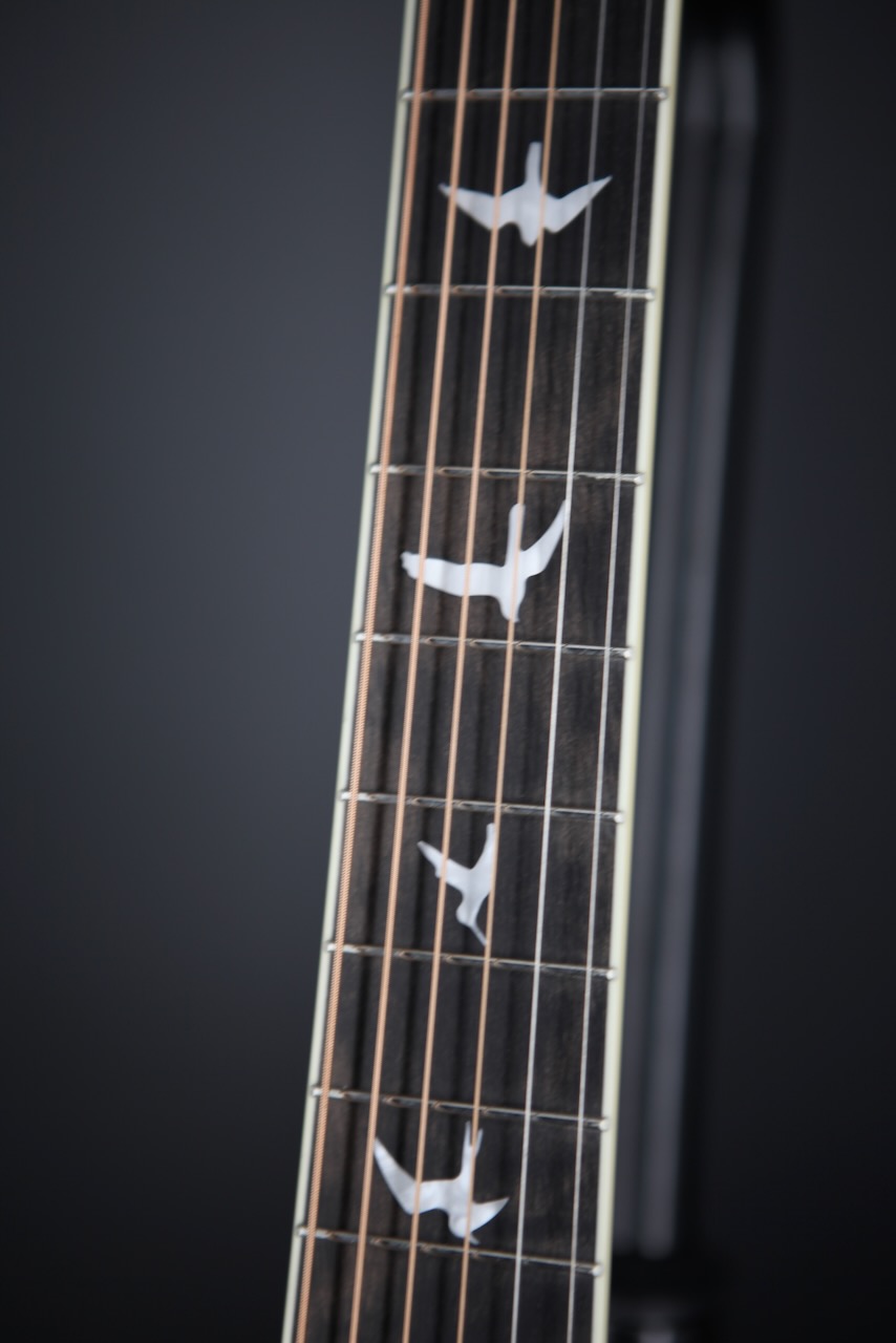 As you might expect from PRS, you still get the iconic bird inlays even in their acoustic selection. The short 24.72 inch scale length neck allows for quick jumps across the luxurious ebony fingerboard. It's matched with a beautifully contoured ebony bridge granting comfortable picking hand placement.
