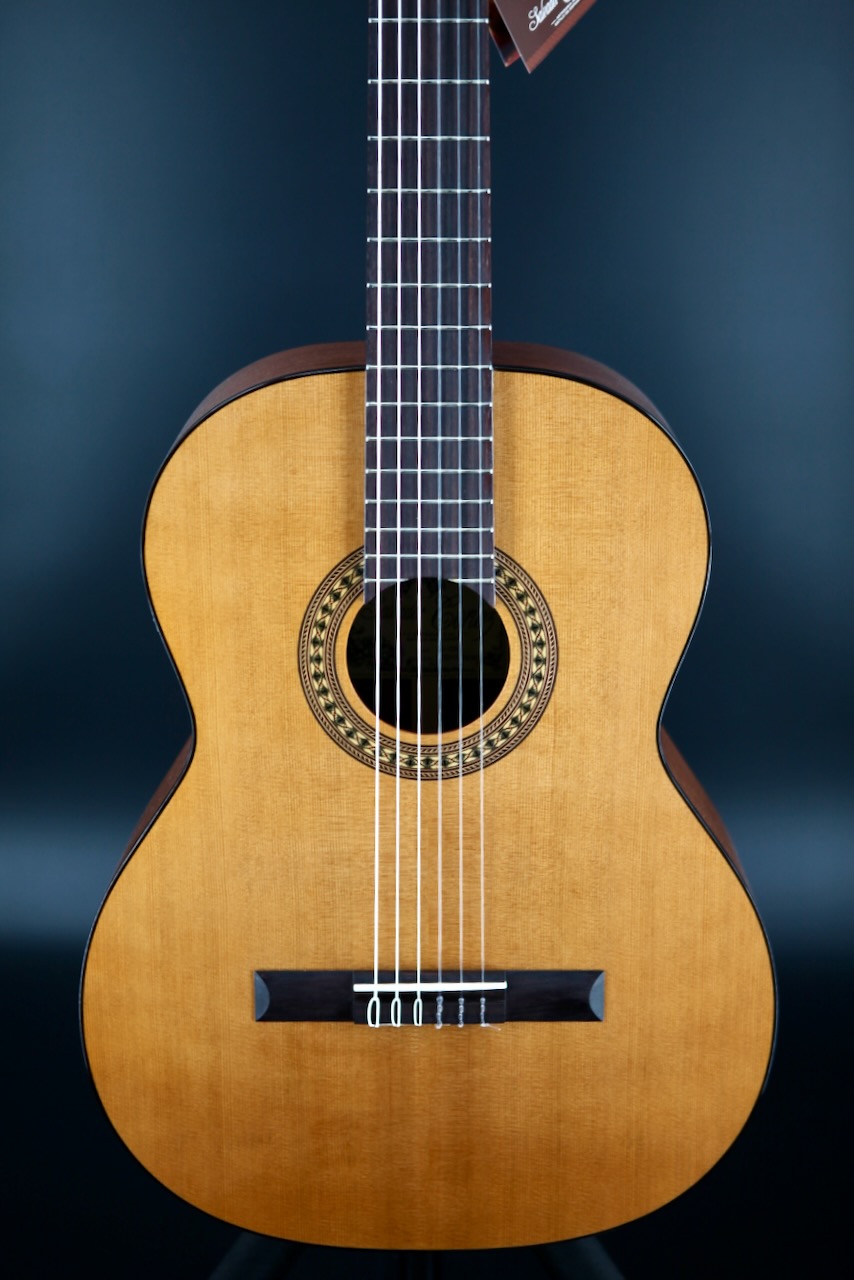 Designed with beginners and advancing students in mind, this nylon-string guitar features an adjustable truss rod — a feature usually reserved for higher-end classical instruments — allowing perfect action and easy setup by your dealer. Its Spanish neck joint, mahogany neck, and rosewood fingerboard provide stability and comfort, while the Savarez 500 AJ strings ensure a rich, expressive sound.