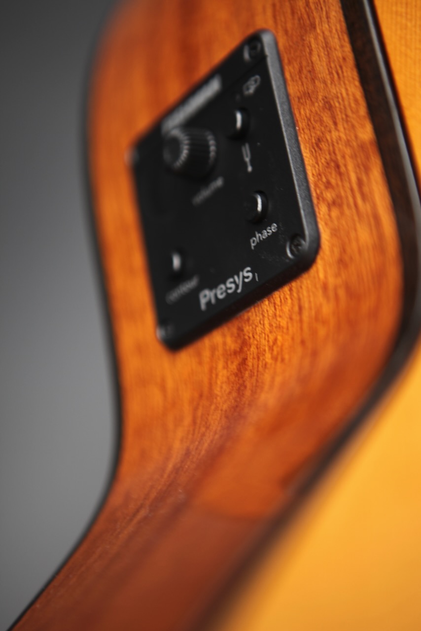Equipped with a Fishman Presys I pickup system (with volume, contour, phase control, and tuner), the CC-22E is ready for both practice and performance, whether unplugged or amplified.