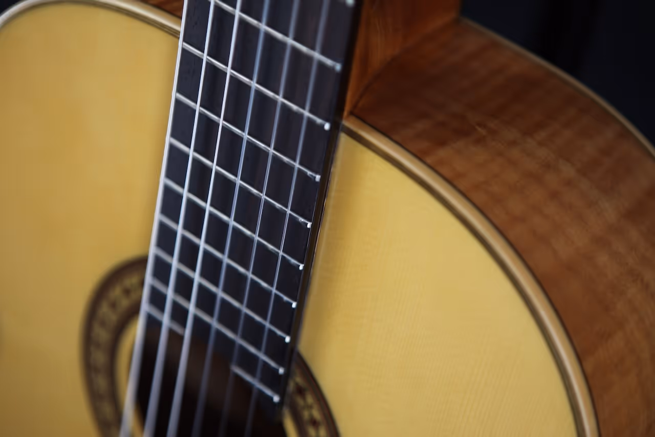 Honouring the tradition of the middle-European school of classical guitar making, this flamed maple guitar has a look and sound of its own. A clear, and ballsy sound that is great for song accompaniment. The set-up and playability is great, partly due to the dual action trussrod. The beautiful flamed maple is of very high quality and complements the solid European spruce top beautifully.