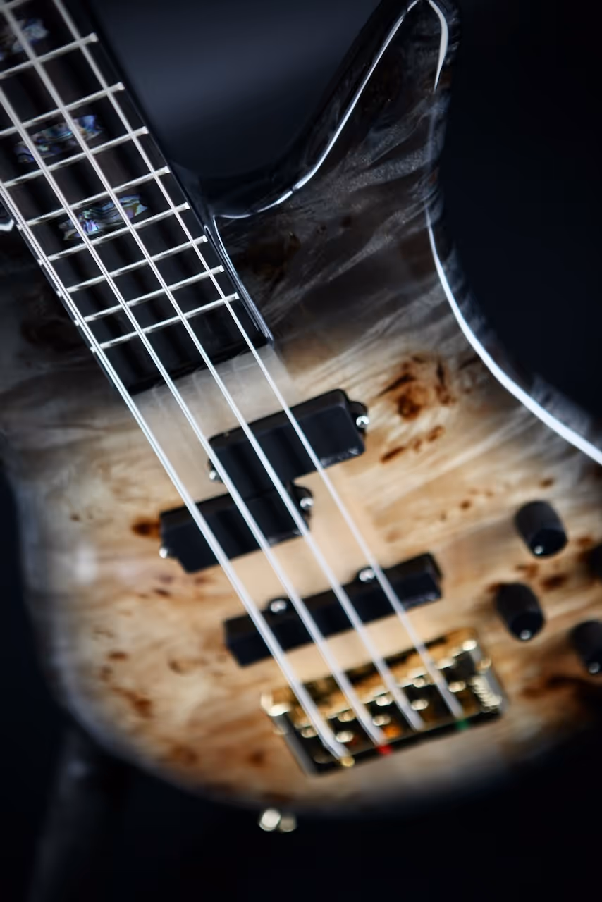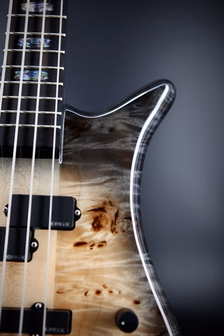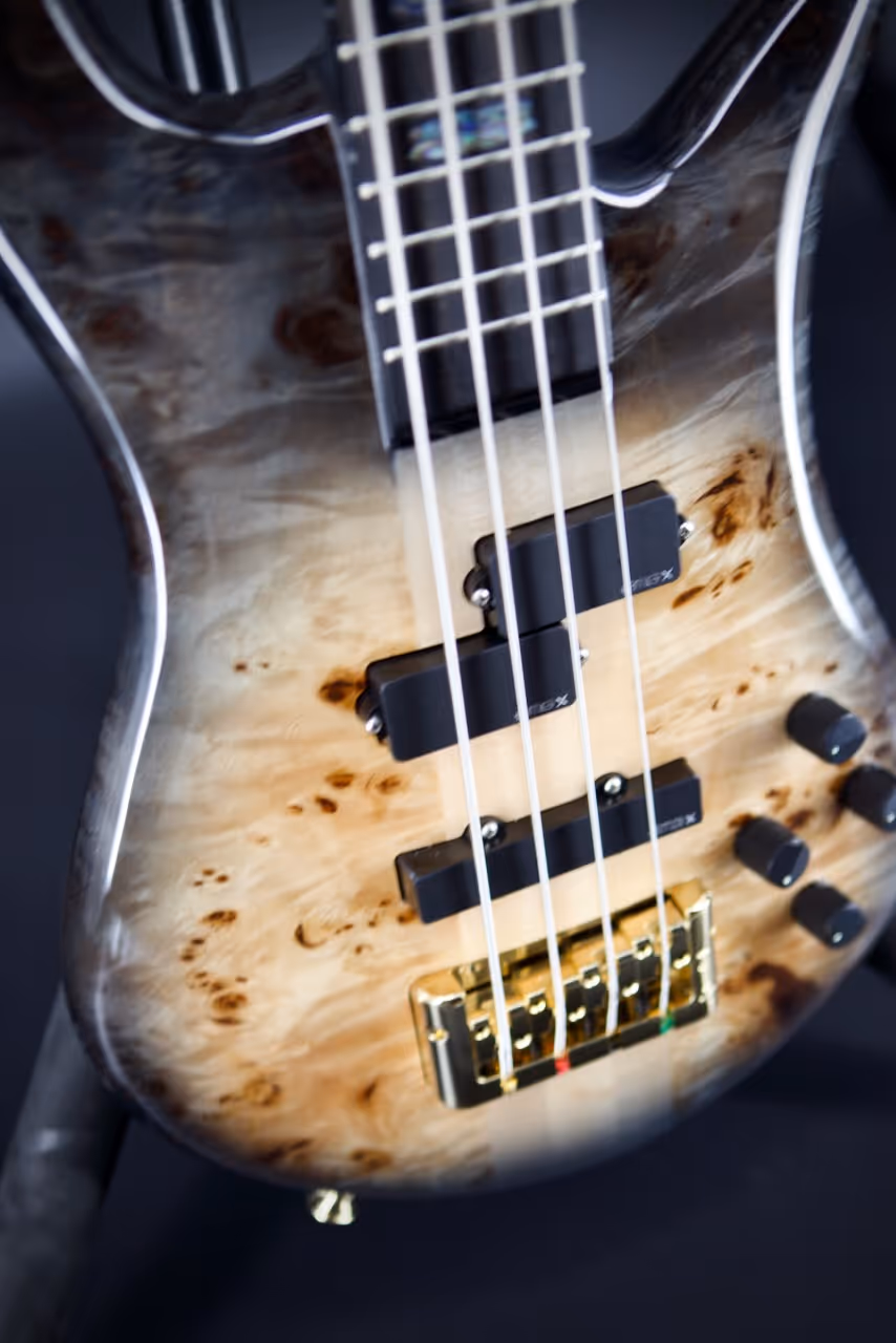 The Euro CST draws inspiration from our Woodstock, NY-based Custom Shop, introducing all-new tonewoods, electronics, and finish combinations never seen in the Euro Series. Each Euro CST instrument is meticulously crafted using premium materials, featuring a striking, highly figured Poplar Burl top, a resonant European Ash body, and a 3-piece North American Maple neck paired with an Ebony fingerboard adorned with laminated Abalone Crown inlays. These basses are equipped with a lightweight aluminum bridge for precise and reliable intonation. Premium active EMG X Series pickups deliver the exceptional clarity, attack, and silent operation that defines the Spector sound. Spector is proud to offer the all-new Spector Legacy preamp for the Euro CST range. Developed in collaboration with Darkglass Electronics, this preamp captures the classic ‘Spector growl’ heard on countless iconic recordings with added versatility. Elevate your Spector experience with the all-new Euro CST lineup.
