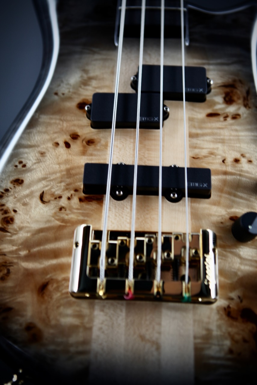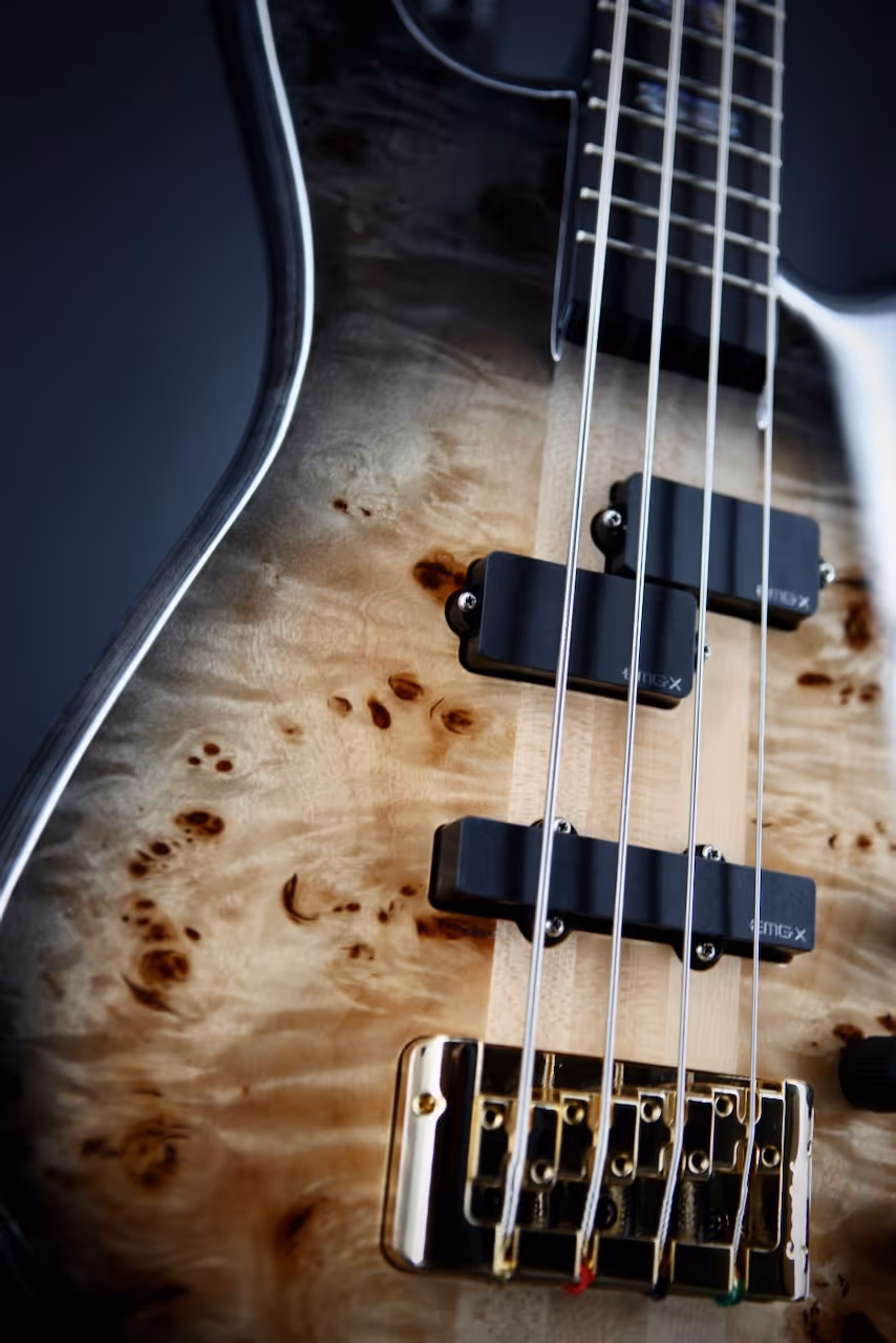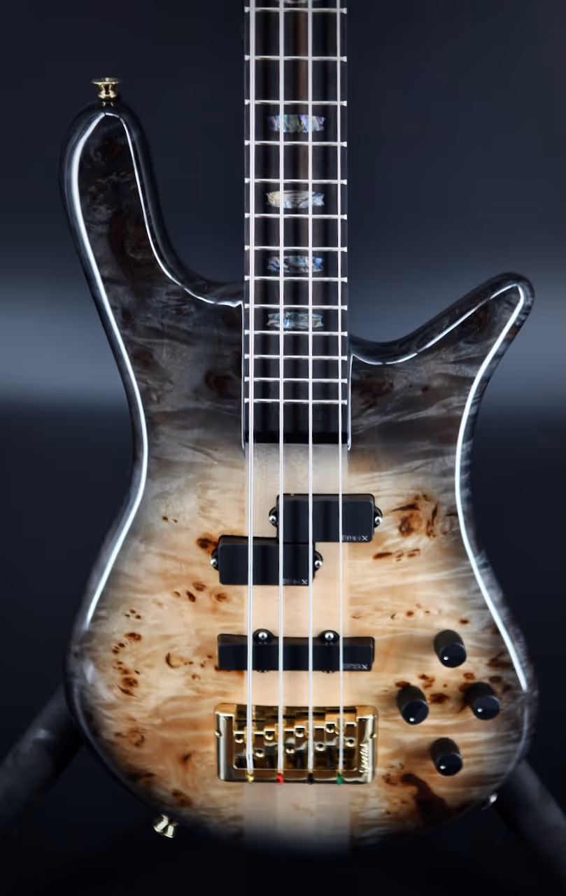 The Euro CST draws inspiration from our Woodstock, NY-based Custom Shop, introducing all-new tonewoods, electronics, and finish combinations never seen in the Euro Series. Each Euro CST instrument is meticulously crafted using premium materials, featuring a striking, highly figured Poplar Burl top, a resonant European Ash body, and a 3-piece North American Maple neck paired with an Ebony fingerboard adorned with laminated Abalone Crown inlays. These basses are equipped with a lightweight aluminum bridge for precise and reliable intonation. Premium active EMG X Series pickups deliver the exceptional clarity, attack, and silent operation that defines the Spector sound. Spector is proud to offer the all-new Spector Legacy preamp for the Euro CST range. Developed in collaboration with Darkglass Electronics, this preamp captures the classic ‘Spector growl’ heard on countless iconic recordings with added versatility. Elevate your Spector experience with the all-new Euro CST lineup.