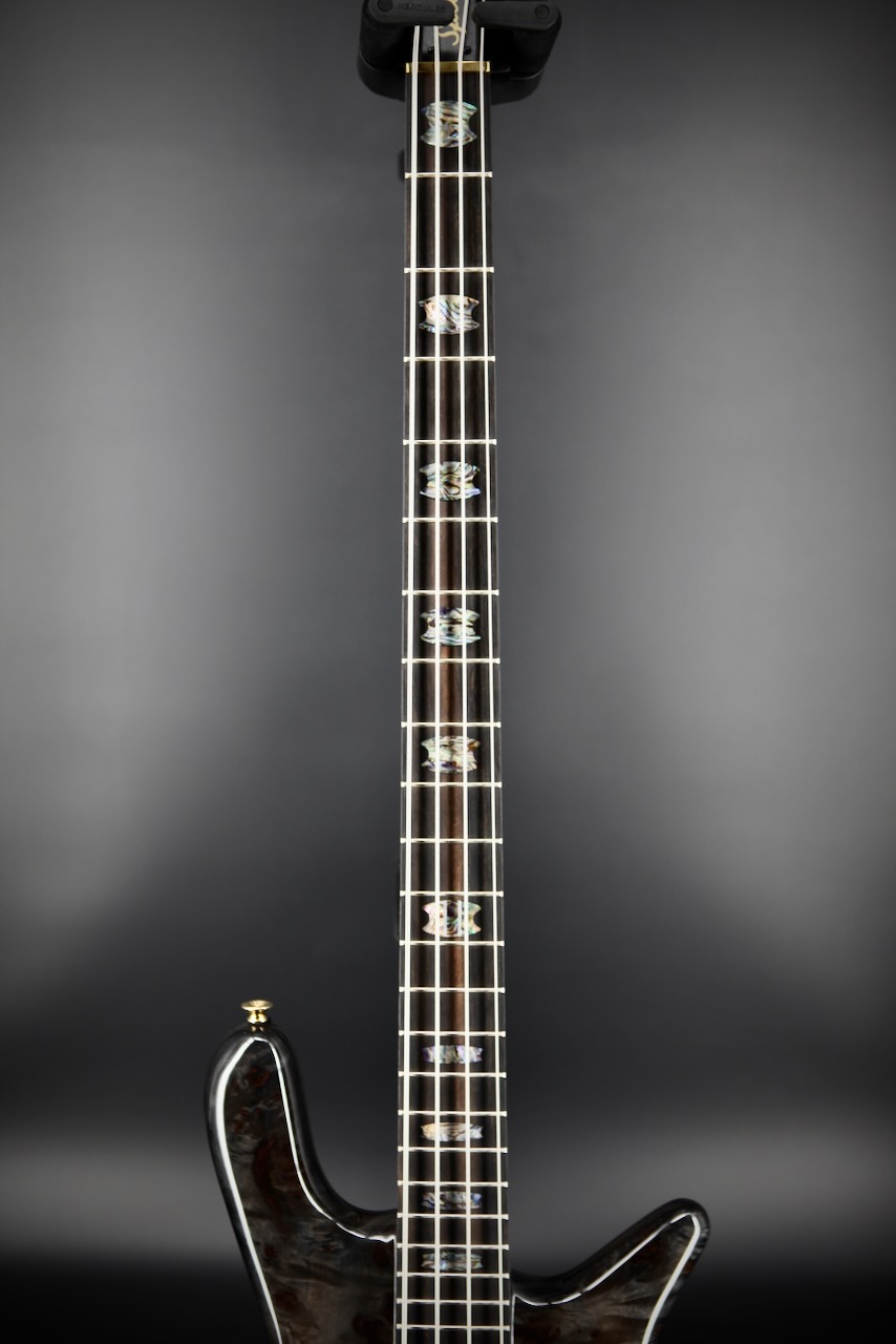 The Ebony fingerboard is adorned with Spector's signature Crown inlay, made from gorgeous laminated Abalone.