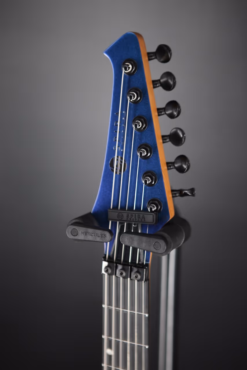 The S-420 is a high-performance double-cutaway rock and metal machine built for precision and playability. Expanding on the S-400, it adds a locking tremolo for divebombs, squeals, and rock-solid tuning stability. A roasted poplar body and satin finished Canadian roasted maple neck ensure durability and sustain, while the Ebony Tech fretboard with 24 jumbo frets provides a fast, smooth playing surface. Powered by Spira’s Villain™ high-output humbuckers in an HH configuration, the S-420 delivers aggressive punch, dynamics, and clarity especially in high gain situations. The guitar’s sleek design, precision hardware and locking tuners offer excellent tuning stability and intonation, making it a reliable choice for both stage and studio.