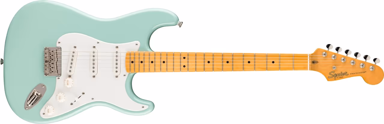 A celebration of the early days of the Strat® in the 1950s, the Classic Vibe™ ‘50s Stratocaster® HT produces incredible tone courtesy of its three Fender Designed™ alnico single-coil pickups. An option first introduced in 1955, the hardtail bridge (HT) provides stable intonation and its string-through-body design creates optimal body resonance. This throwback Squier model also features 1950s-inspired headstock markings, rich-looking nickel-plated hardware and a slick vintage-tinted gloss neck finish for an old-school vibe.