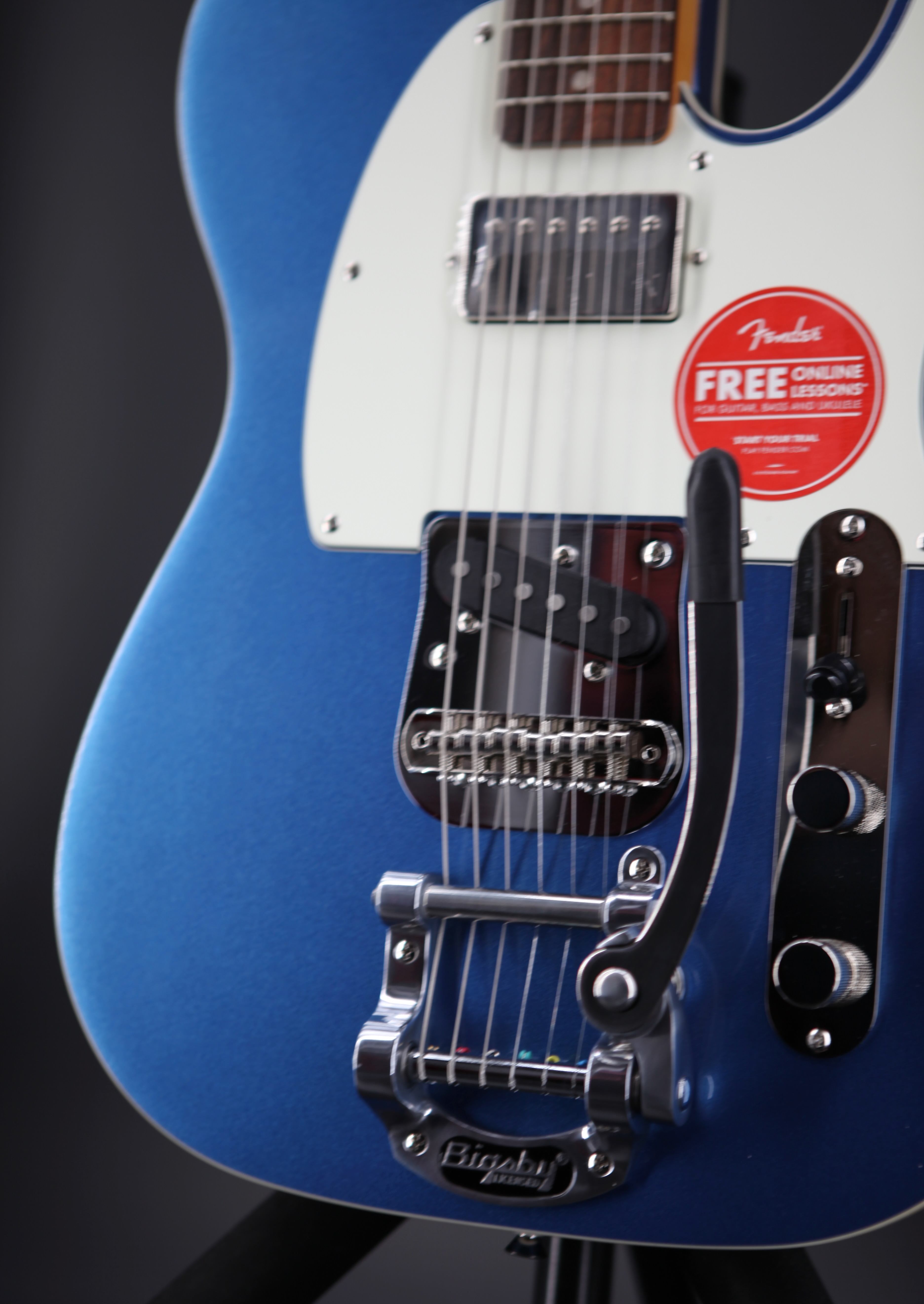 A tribute to the double-bound body Tele® models of the late ’50s and ’60s, this Classic Vibe™ Custom Telecaster creates incredible tone courtesy of its Fender Designed™ alnico single-coil bridge and humbucking neck pickups (SH). Delivering expressive vibrato effects, the Bigsby® tailpiece features a string-through design for easy restringing and is complemented by a floating bridge with barrel saddles for optimal intonation stability. This throwback Squier® model also features period-inspired headstock markings, rich-looking nickel-plated hardware and a slick vintage-tinted gloss neck finish for an old-school vibe.