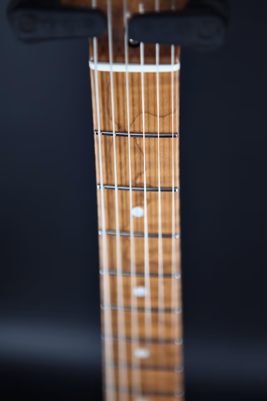 We, Muziekhandel Oudenaarde, asked our friends at Suhr Guitars to build a custom, and this is what came out. We chose for the comfortable Classic S as a canvas and spec it out with some very popular features on artist models. The inspiration came in fact from a Pete Thorn video when he was on tour in the UK, he played a Classic S with single coils in Lake Placid Blue. When you look at the specs of this guitar, you'll know where we wanted to go with this one.... and the result is stunning in every aspect !