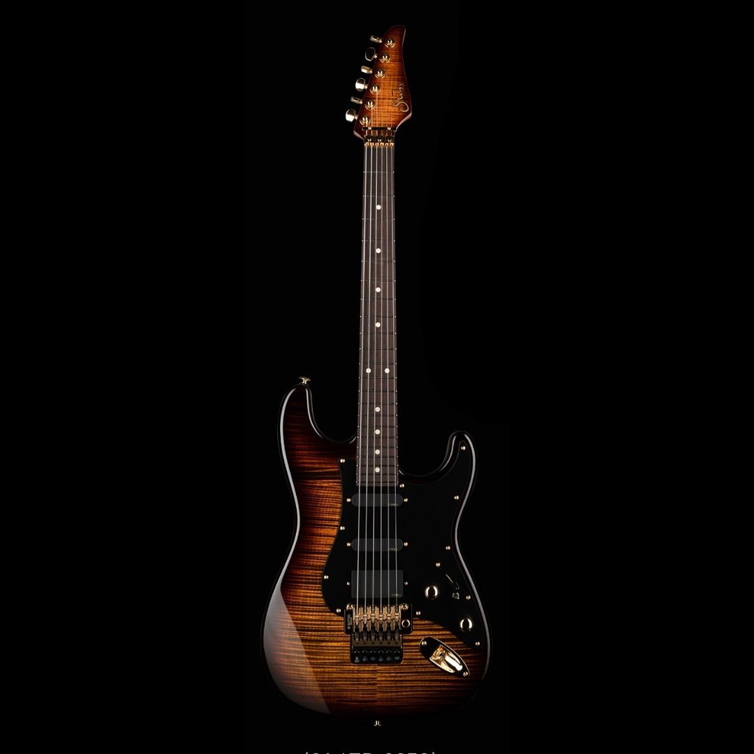 After the incredible Classic T Paulownia 2020 LE, Suhr has introduced the Suhr Classic S Paulownia 2021/2022 LE. A beautiful Paulownia Classic S body, listed here in Sonic Blue, with tortoiseshell pickguard. Paired with a 3A Roasted Birds-Eye Maple ’60’s C vintage standard neck and fingerboard with heavy stainless-steel frets. A Suhr V63 pickups in the neck and middle positions, and a Suhr DSV humbucker in the bridge with a 5-way blade pickup selector, a Gotoh 510 with bent saddles and steel block.