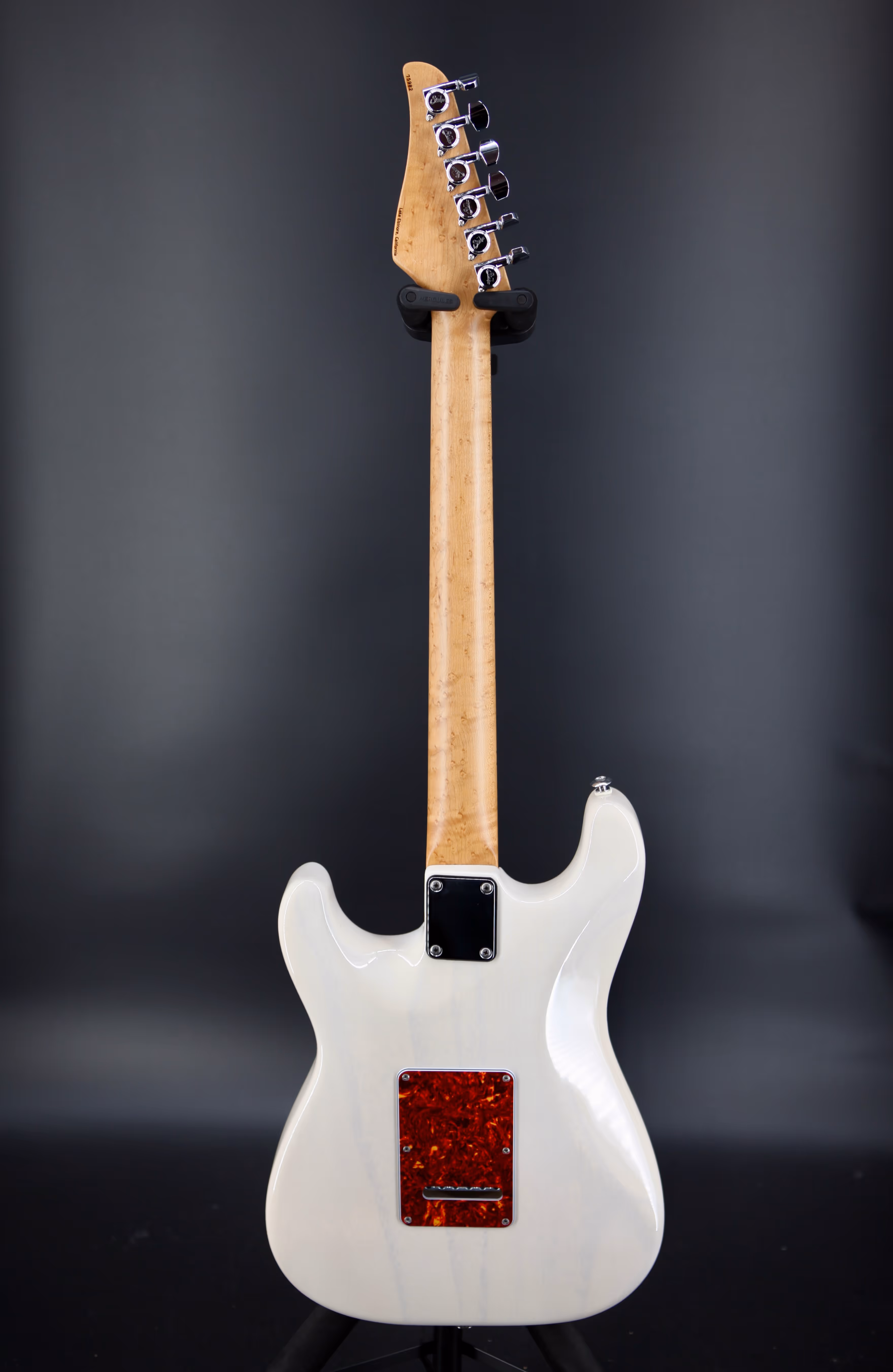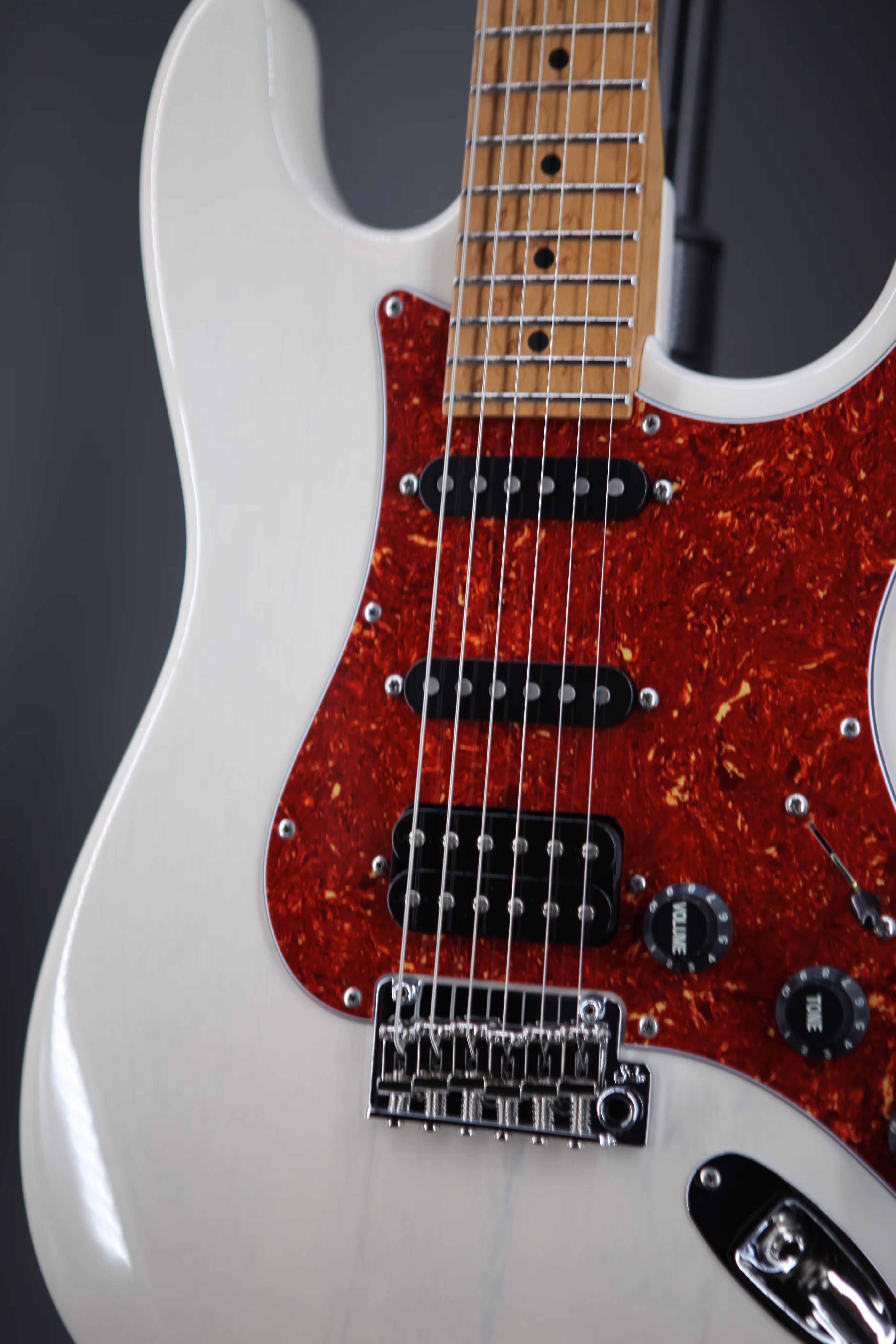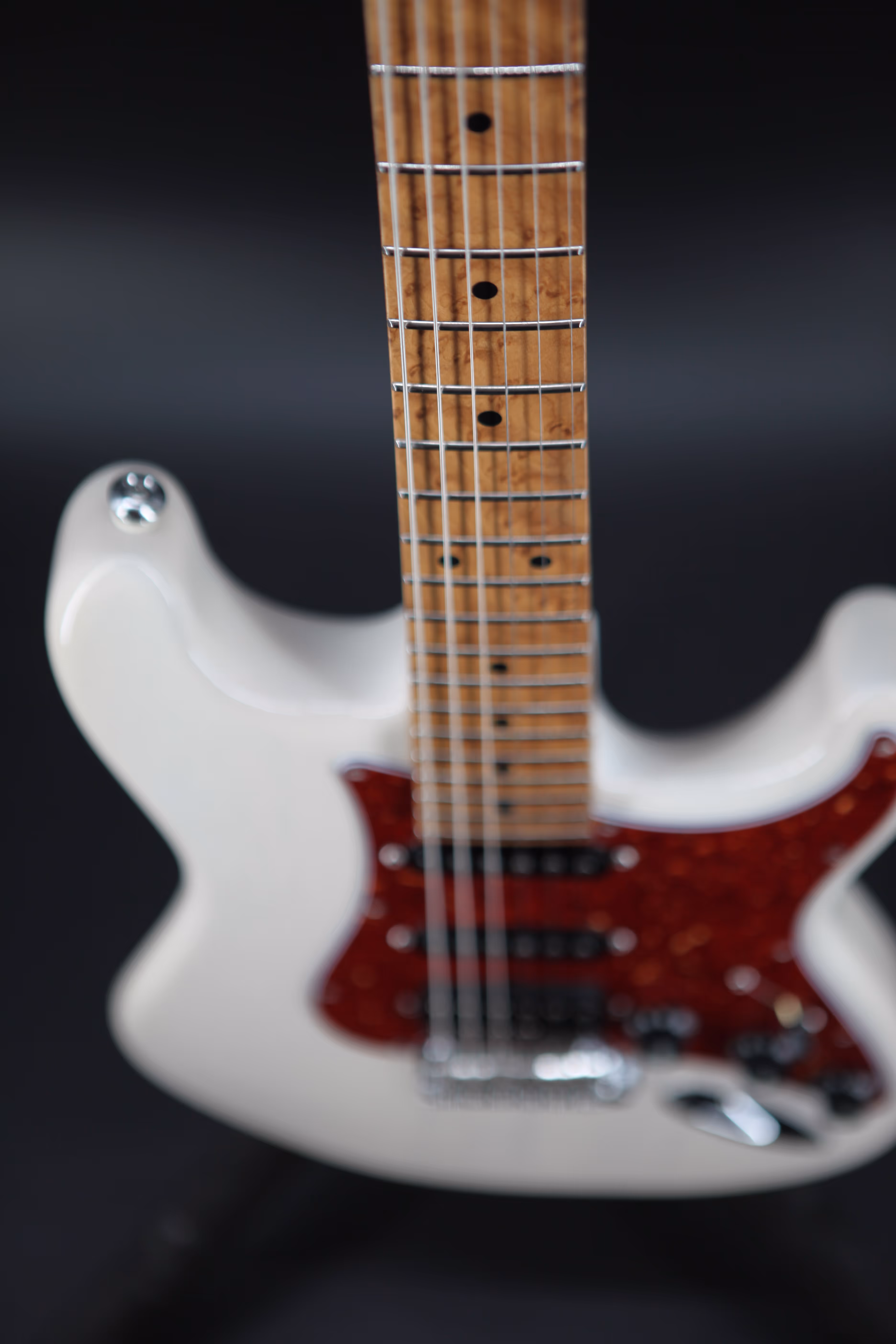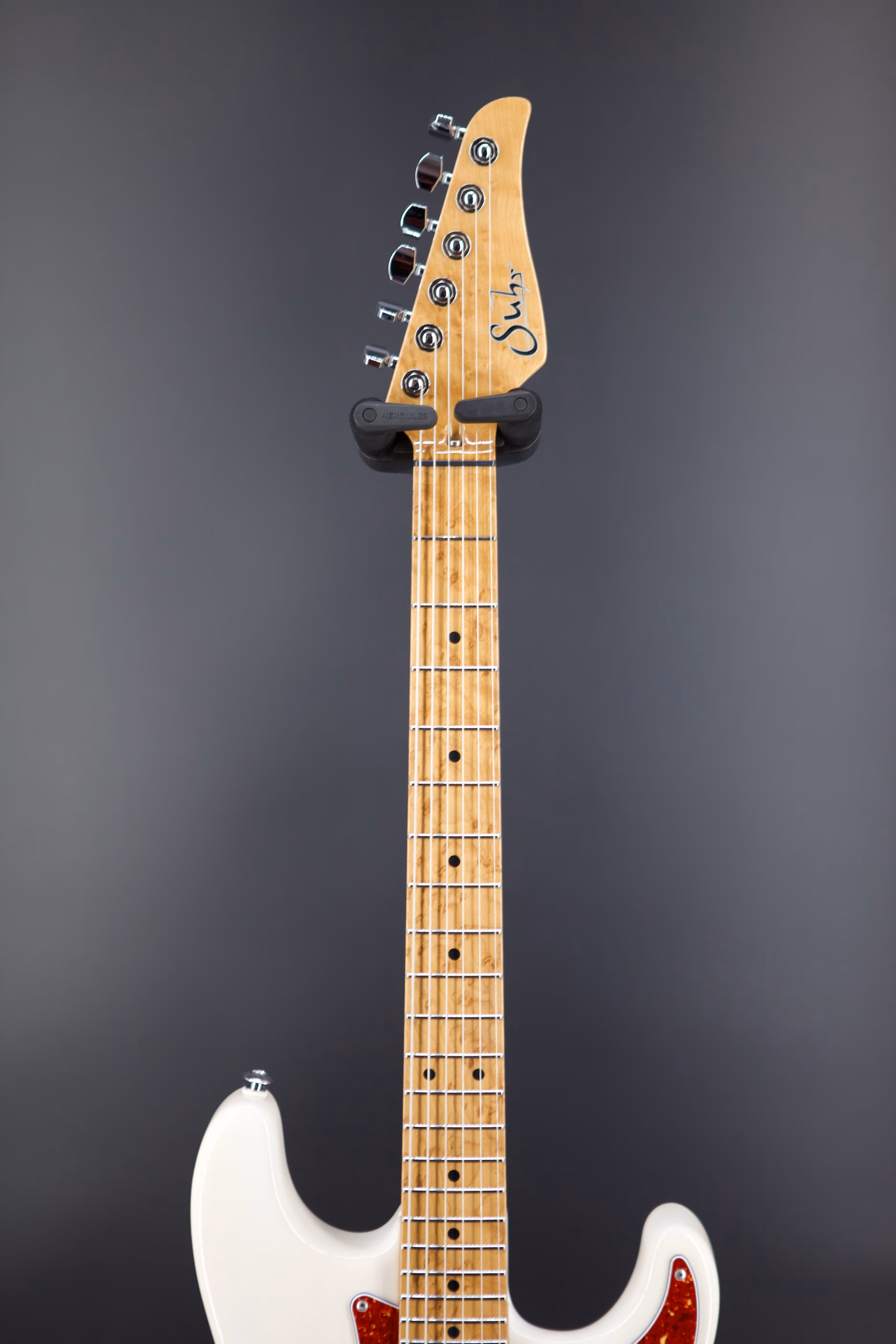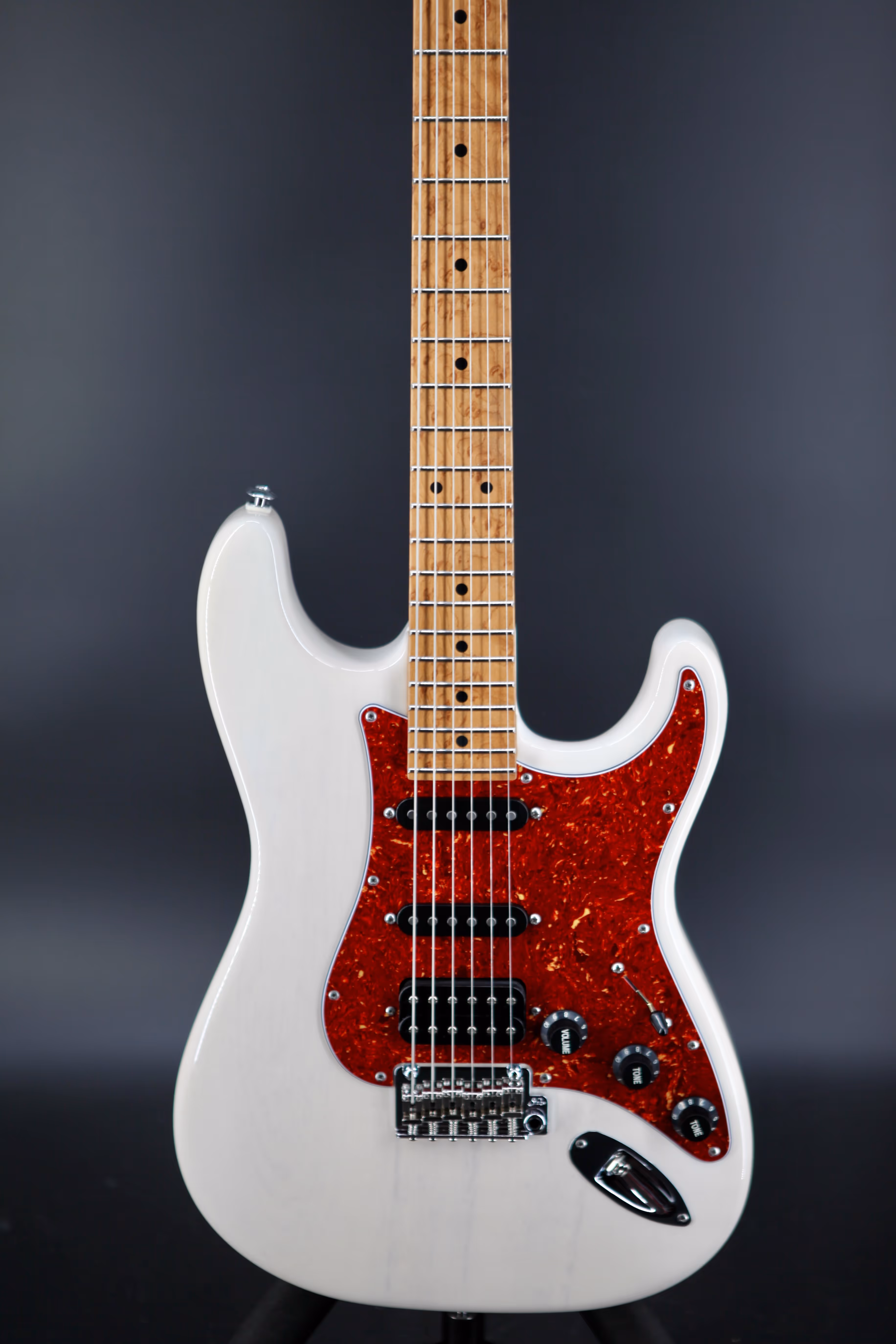 After the incredible Classic T Paulownia 2020 LE, Suhr has introduced the Suhr Classic S Paulownia 2021/2022 LE. A beautiful Paulownia Classic S body, listed here in Trans White, with tortoiseshell pickguard. Paired with a 3A Roasted Birds-Eye Maple ’60’s C vintage standard neck and fingerboard with heavy stainless-steel frets. A Suhr V63 pickups in the neck and middle positions, and a Suhr DSV humbucker in the bridge with a 5-way blade pickup selector, a Gotoh 510 with bent saddles and steel block.
