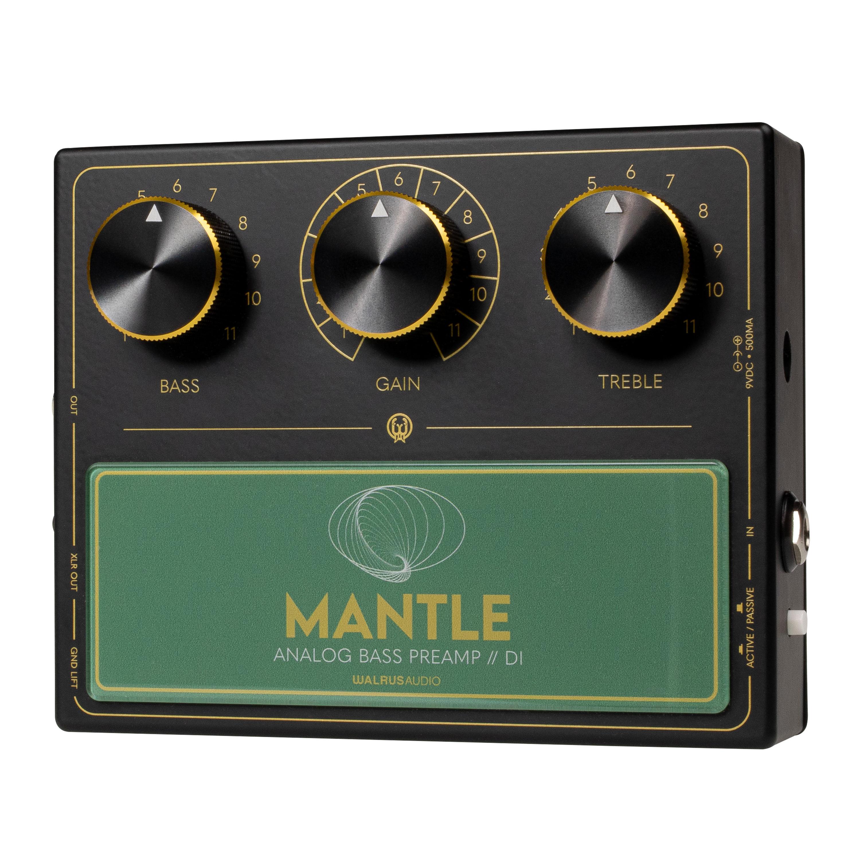 The Mantle features a 1/4" TS unbalanced Hi-Z input optimised for electric bass, buffered by a high-quality JFET stage to maintain proper impedance, detail, and instrument integrity. A 1/4" TS unbalanced output allows you to send your shaped signal to an amp or additional pedals, while the male XLR output is transformer-balanced for elevated DI tones that feel at home in high-end studio and live environments. The Mantle is powered by 9V DC (500 mA, centre-negative) and internally boosted to +24V, delivering massive headroom and a clean, authoritative bass response.